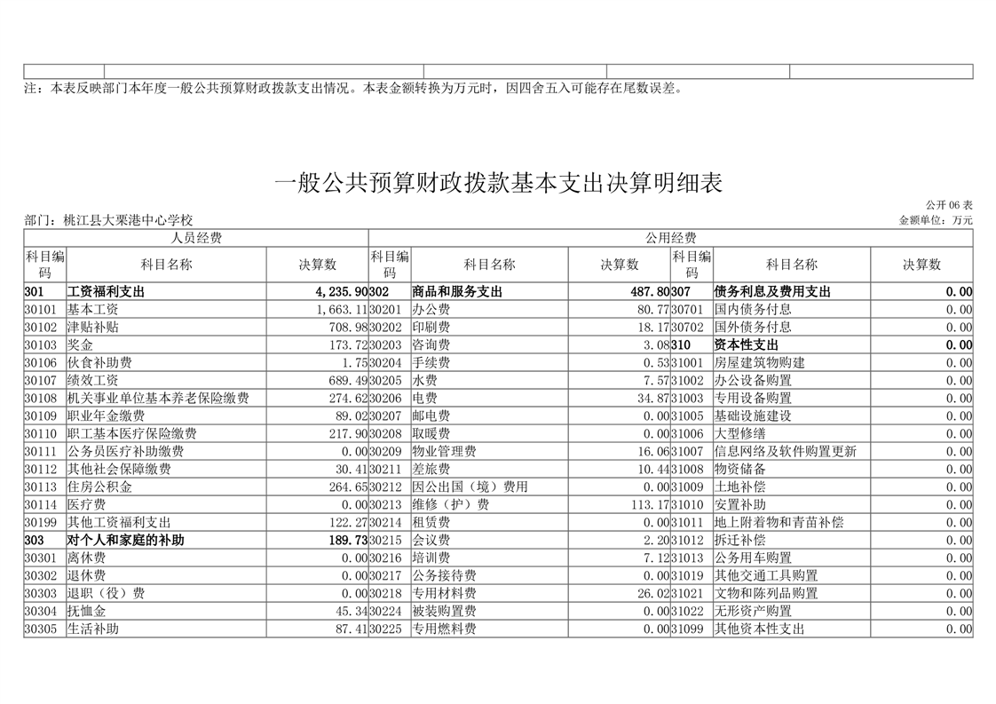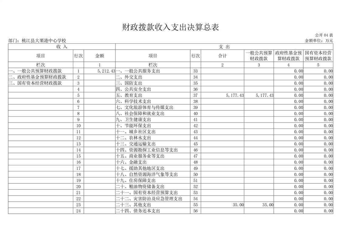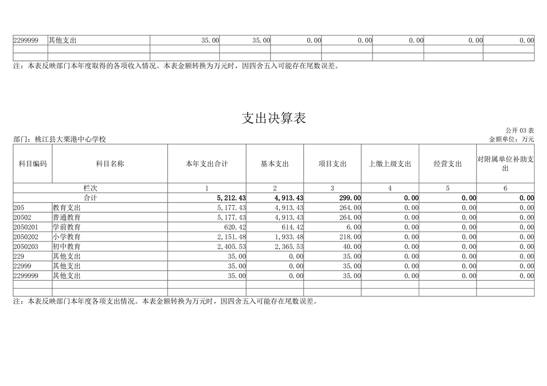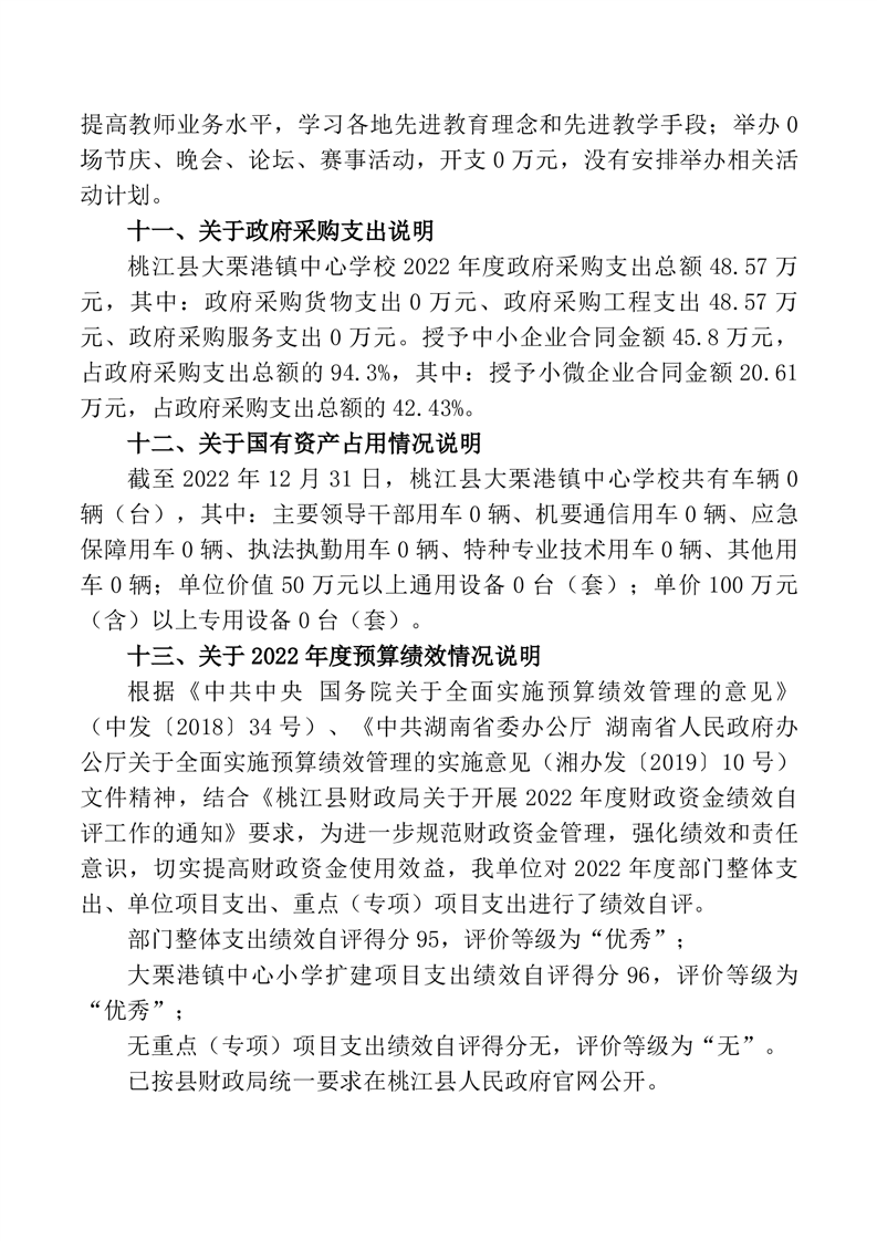 2022年度桃江县大栗港镇中心学校部门决算公开