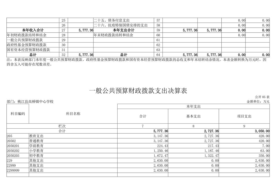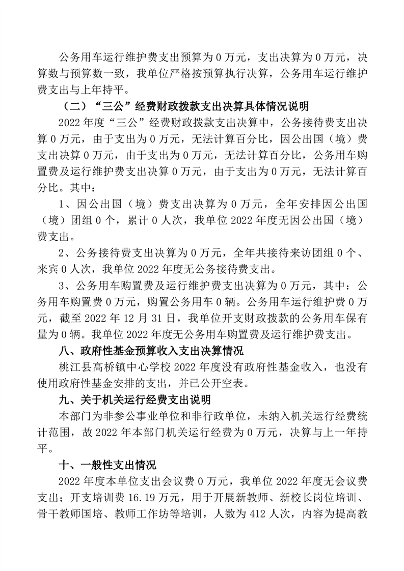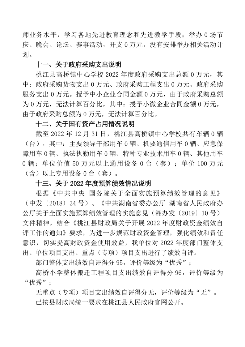 2022年度桃江县高桥镇中心学校部门决算公开说明
