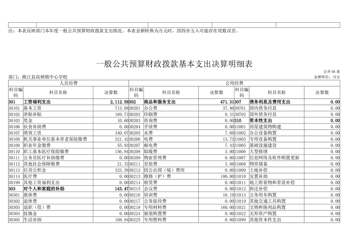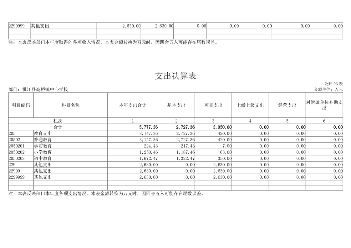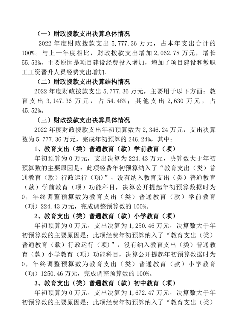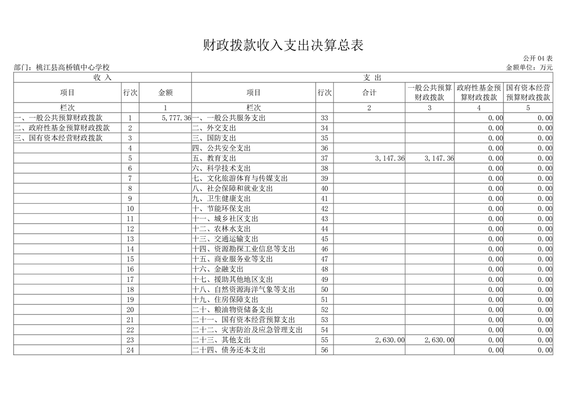 2022年度桃江县高桥镇中心学校部门决算公开说明