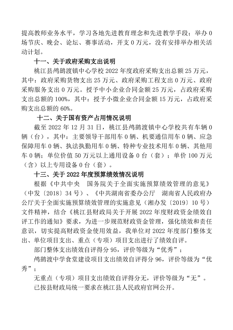 2022年度桃江县鸬鹚渡镇中心学校部门决算公开