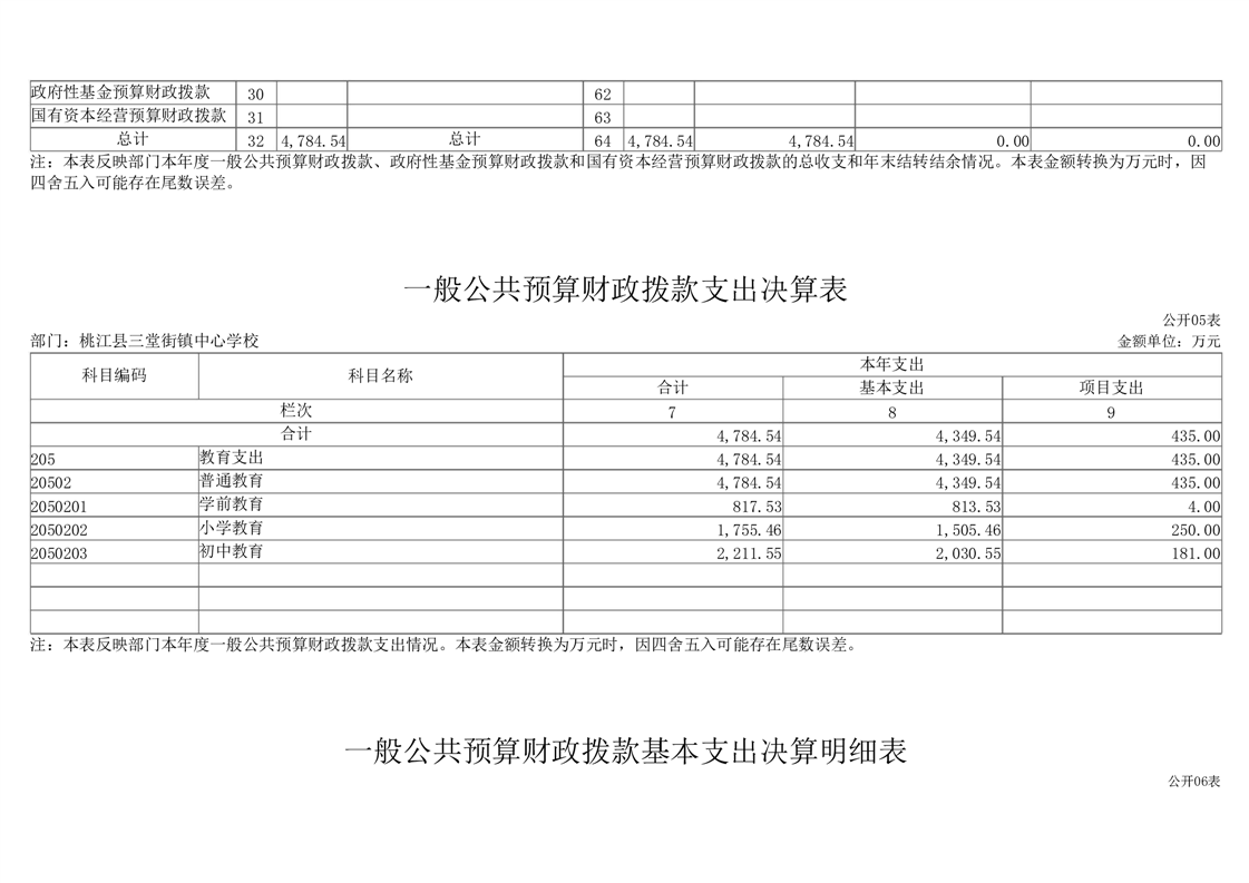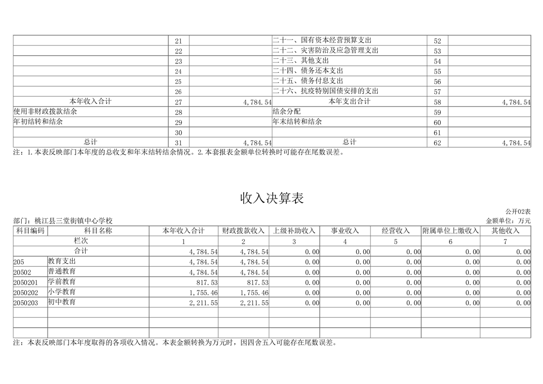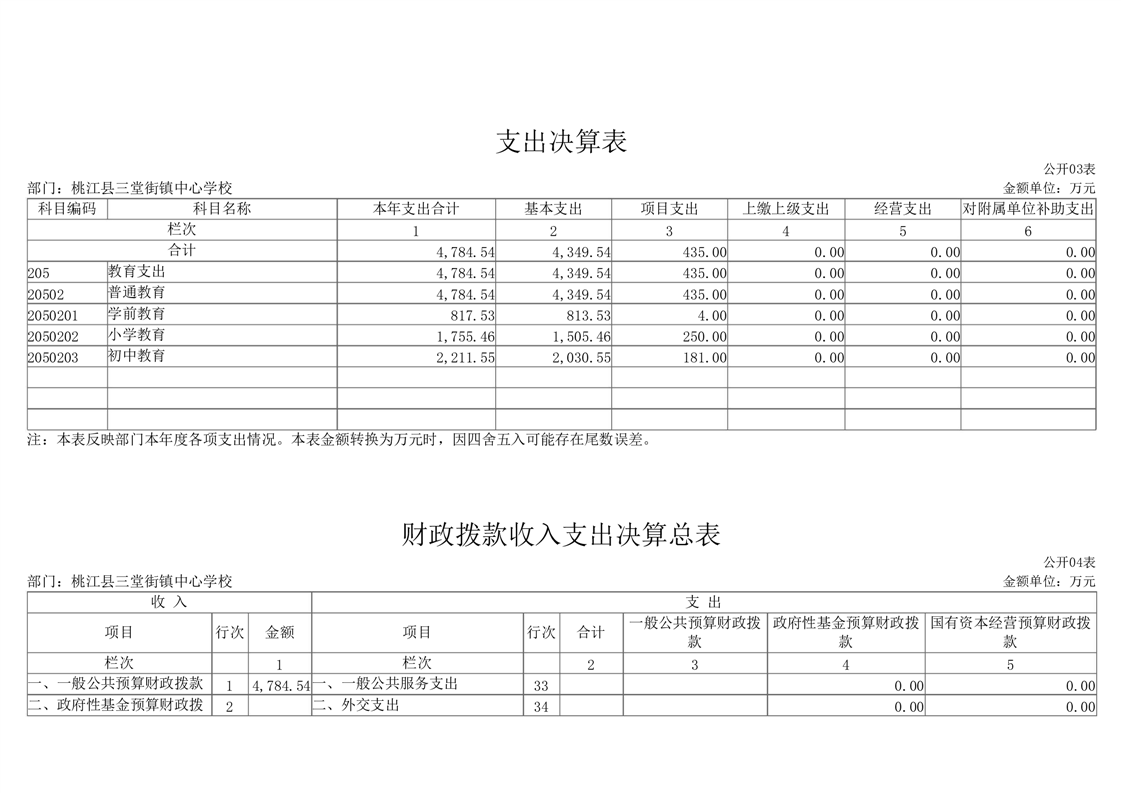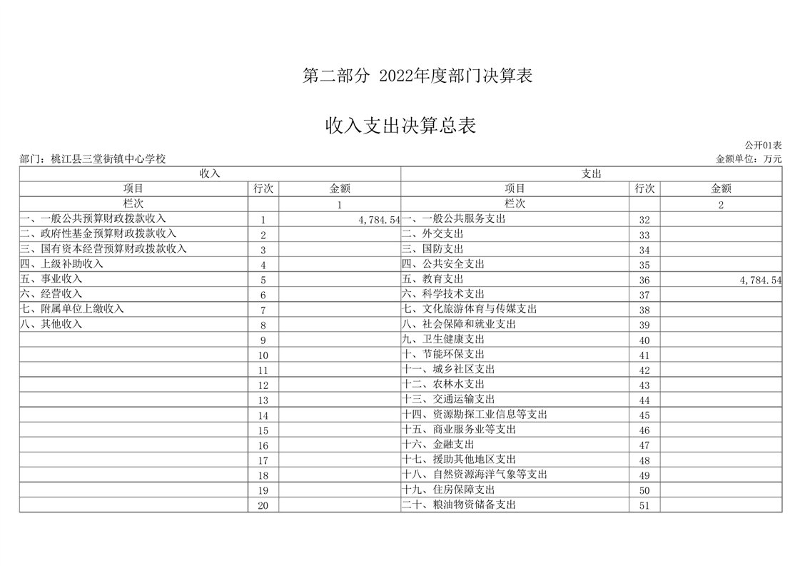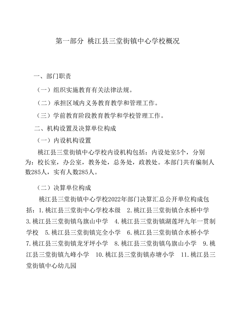 2022年度桃江县三堂街镇中心学校部门决算公开