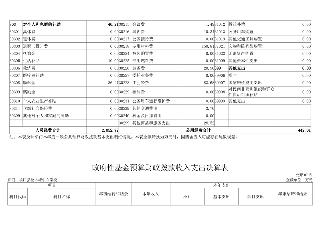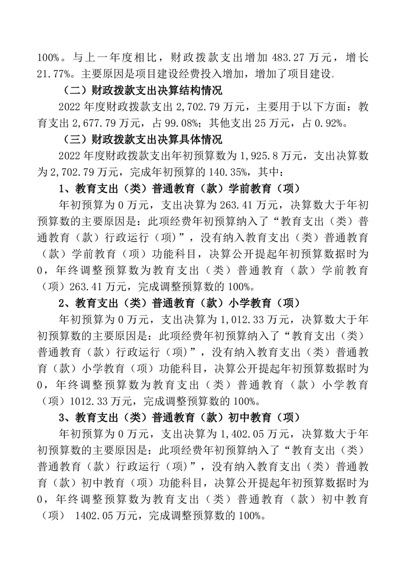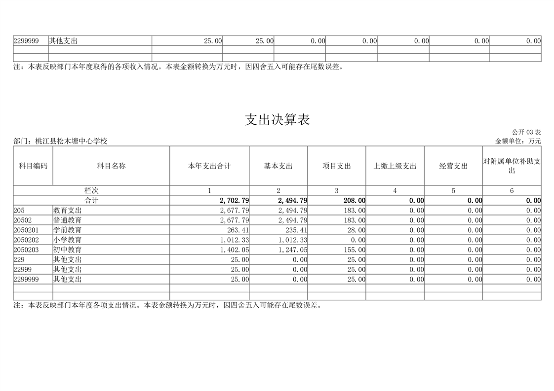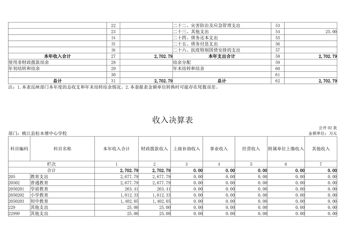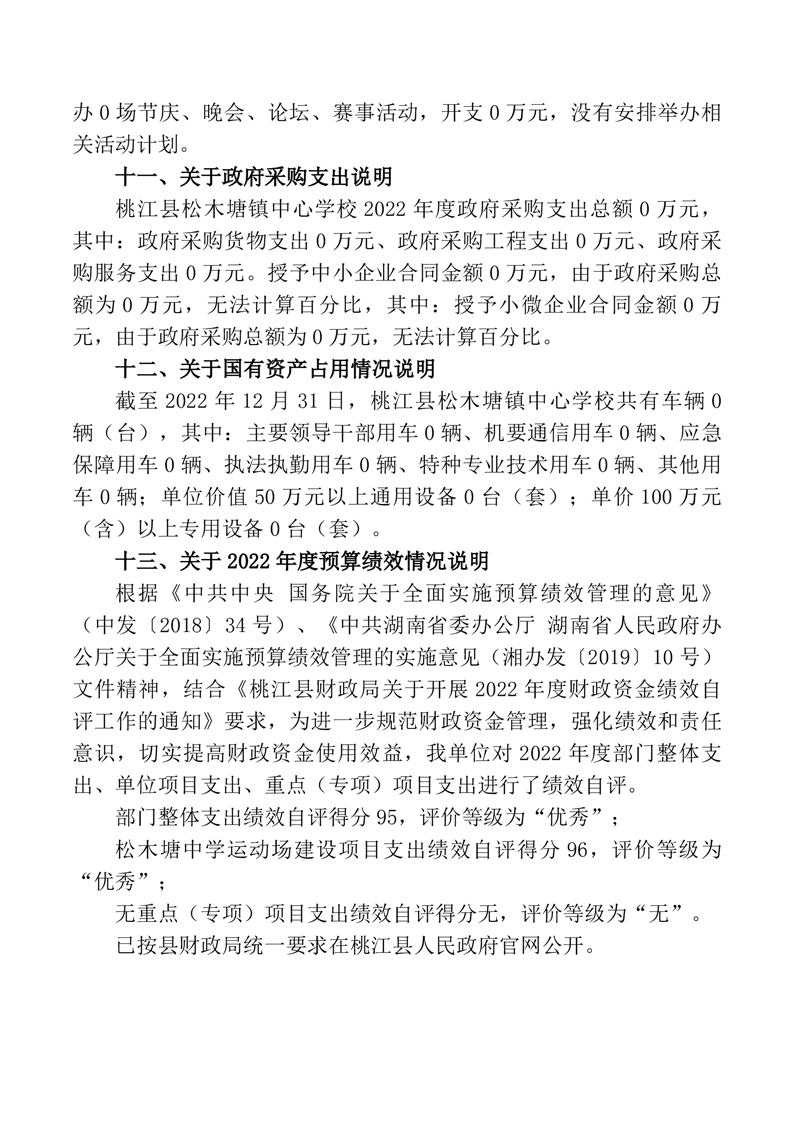 2022年度桃江县松木塘镇中心学校部门决算公开