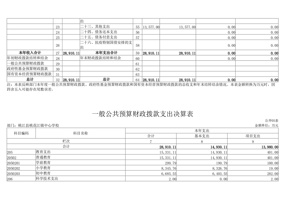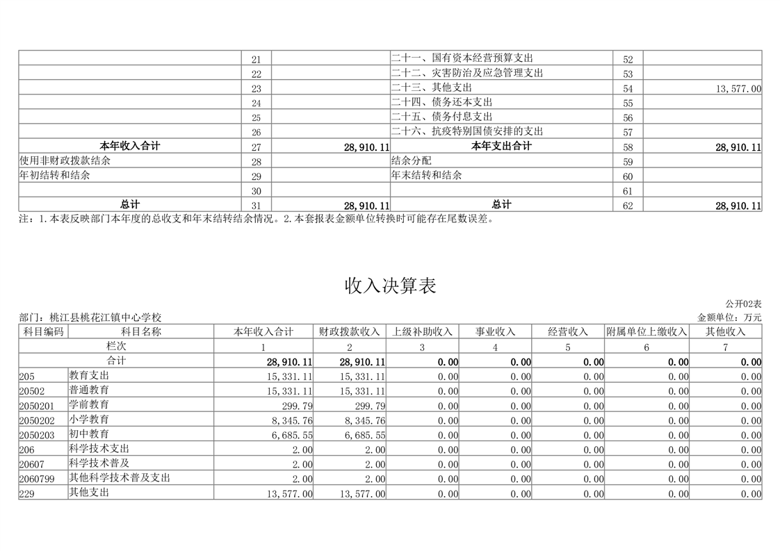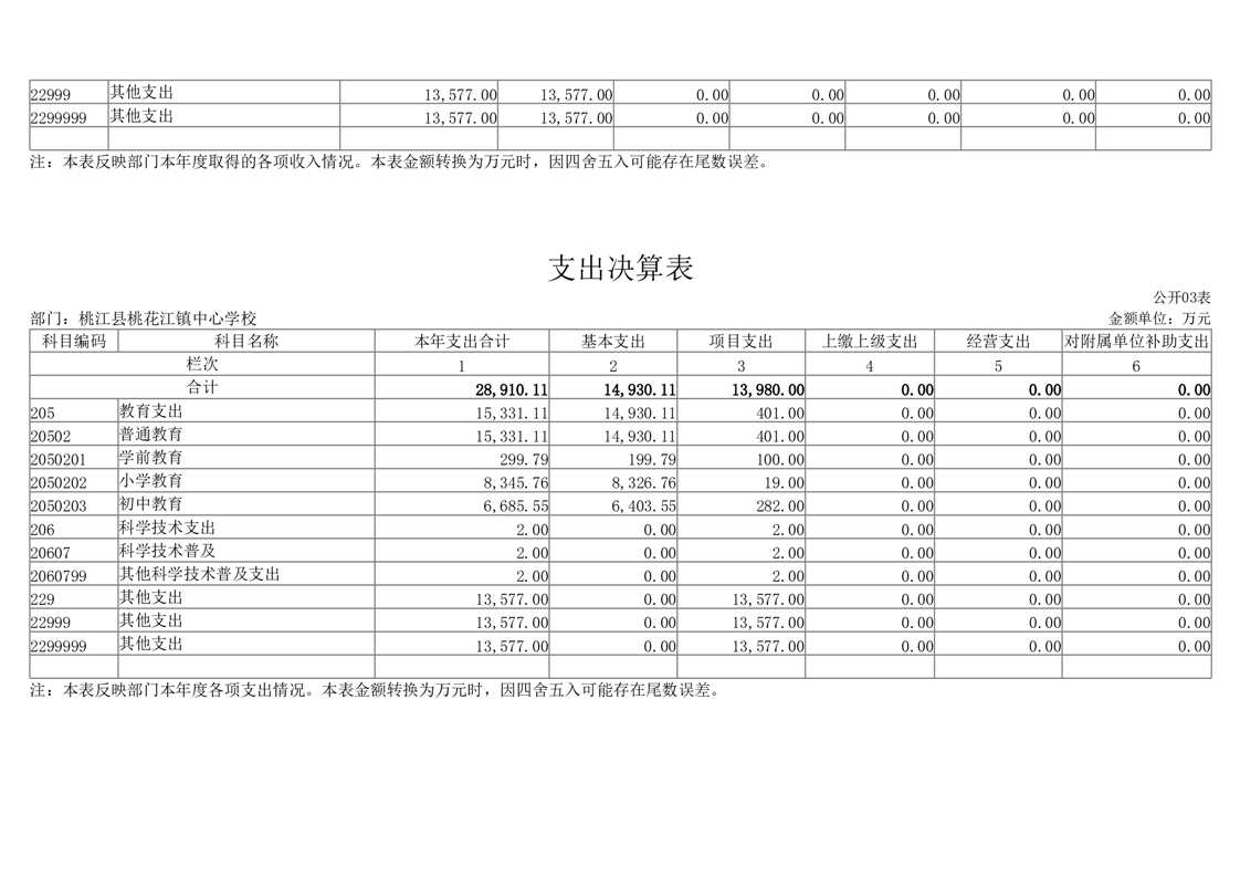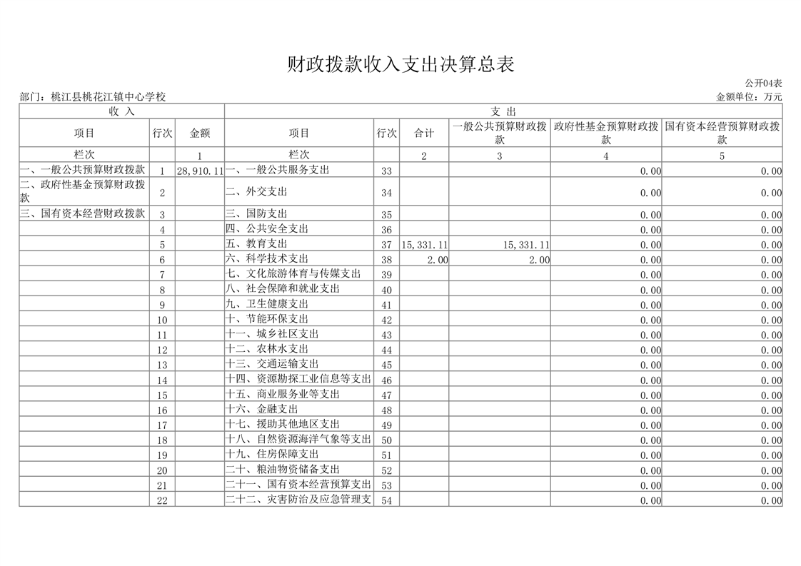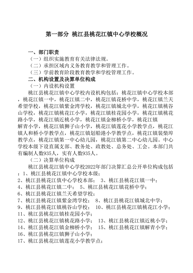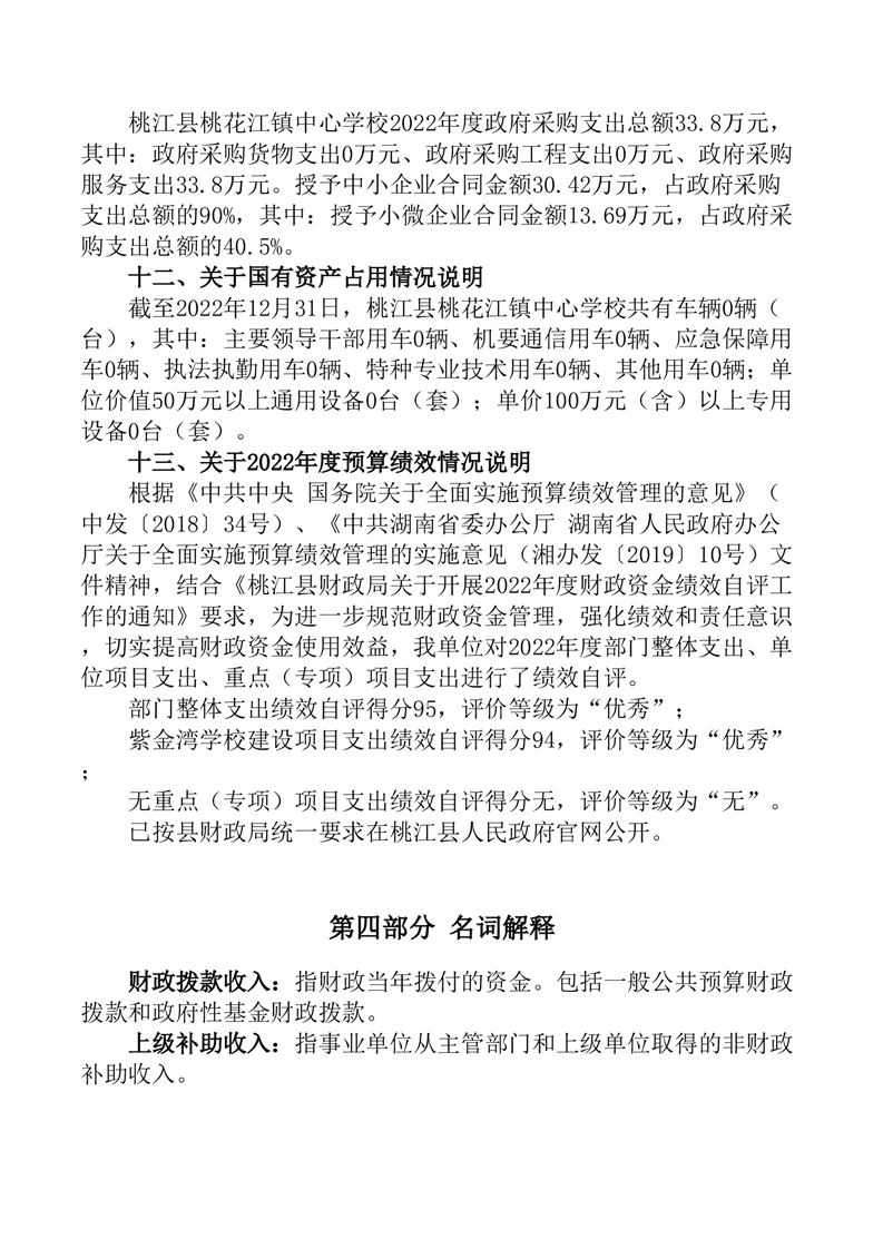 2022年度桃江县桃花江镇中心学校部门决算公开
