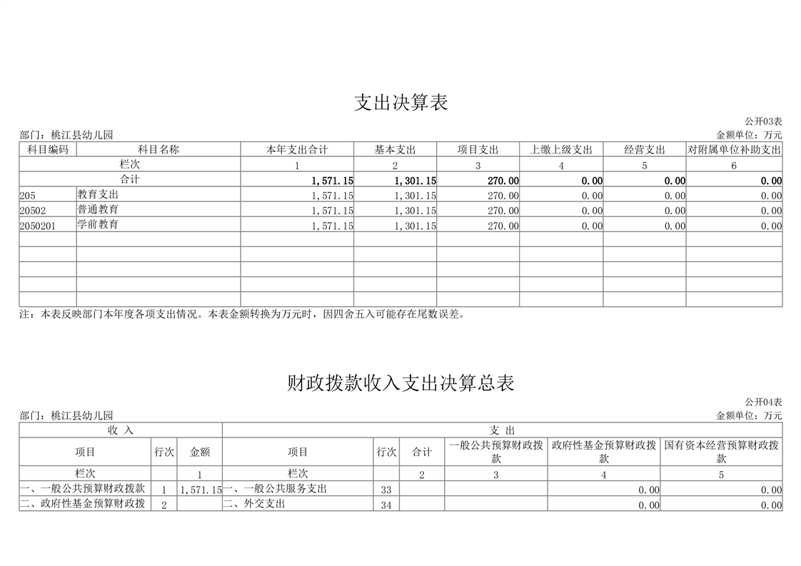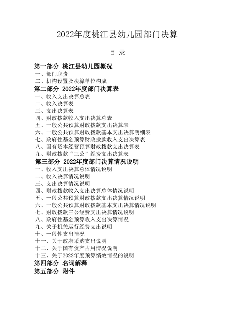 2022年度桃江县幼儿园部门决算公开