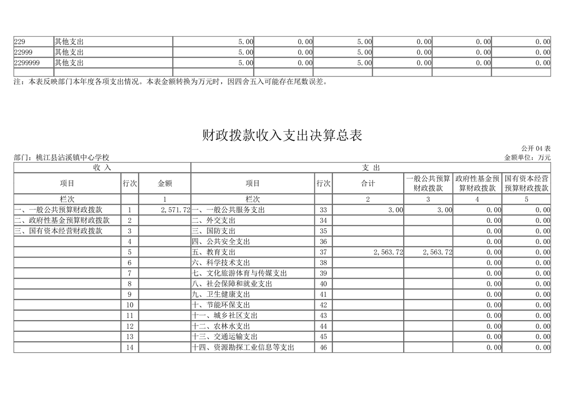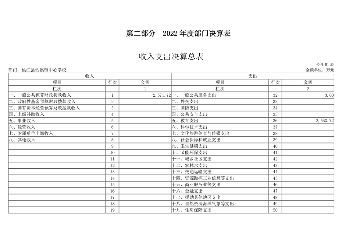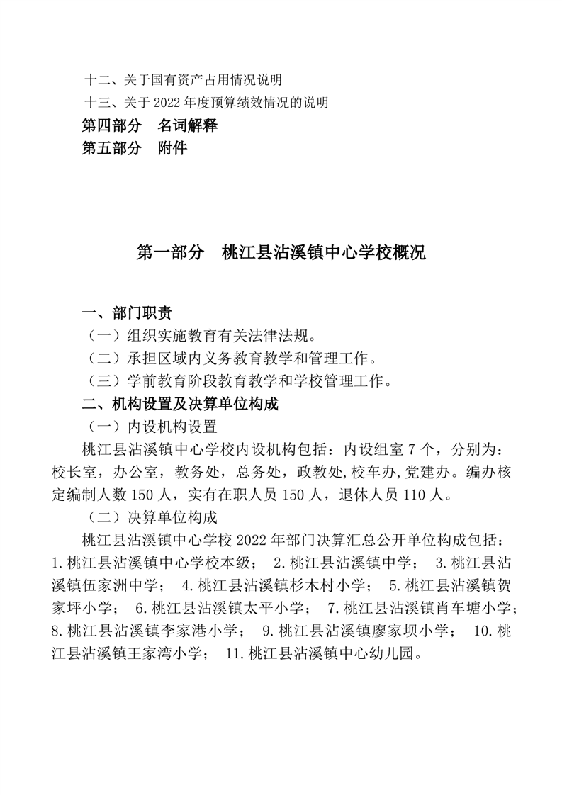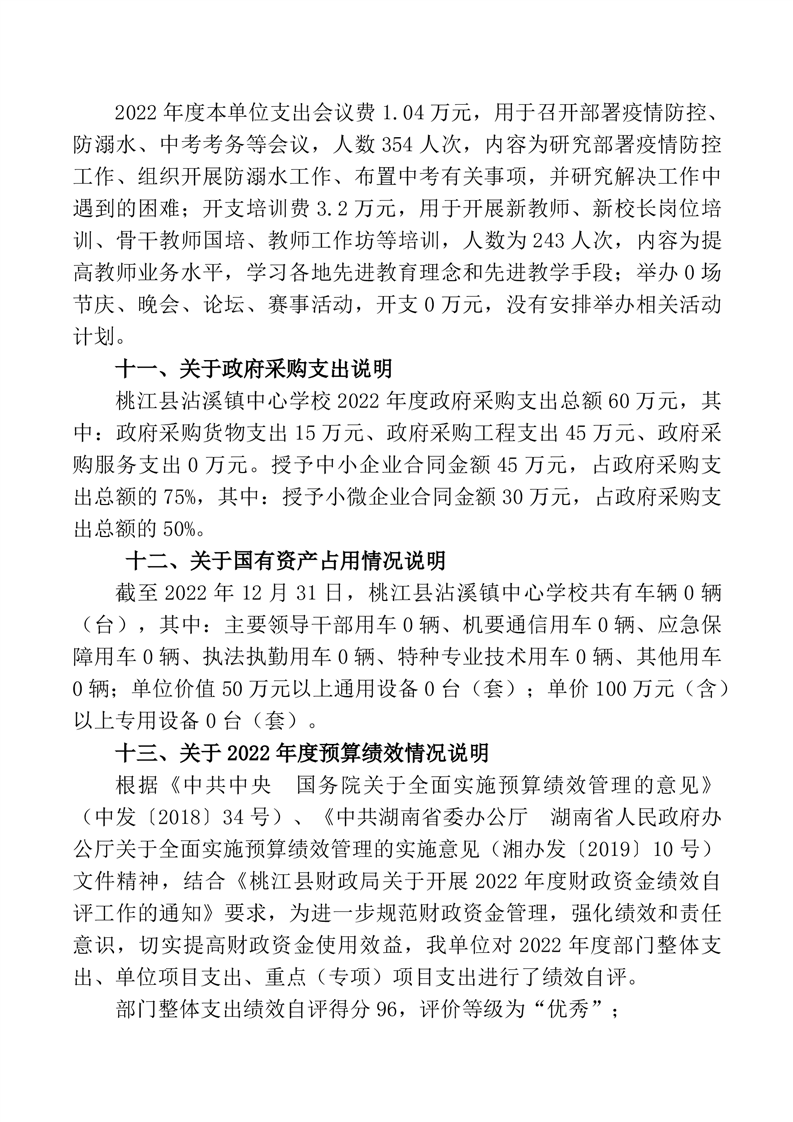2022年度桃江县沾溪镇中心学校部门决算公开