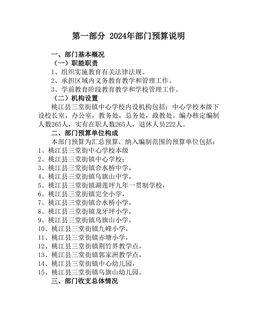 2024年度桃江县三堂街镇中心学校部门预算公开说明