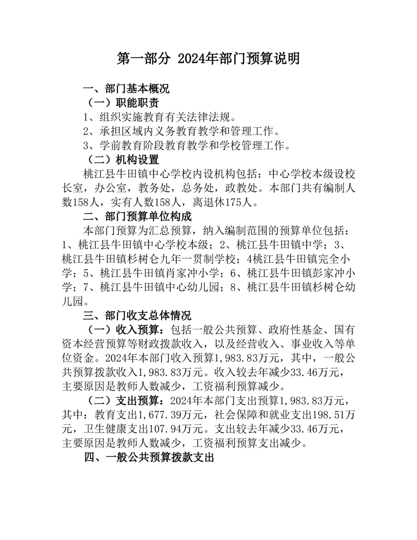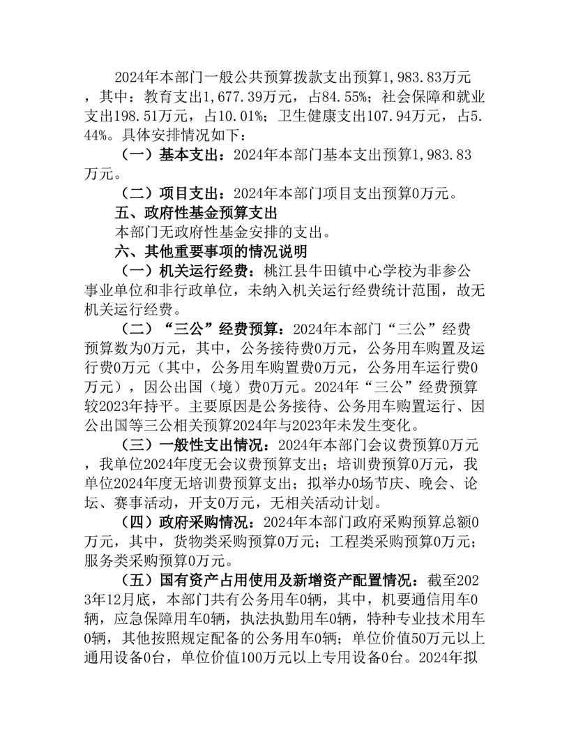 2024年度桃江县牛田镇中心学校部门预算公开说明