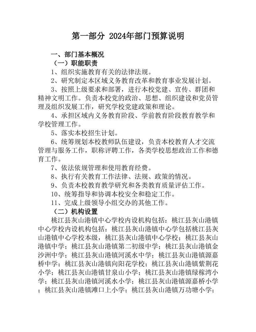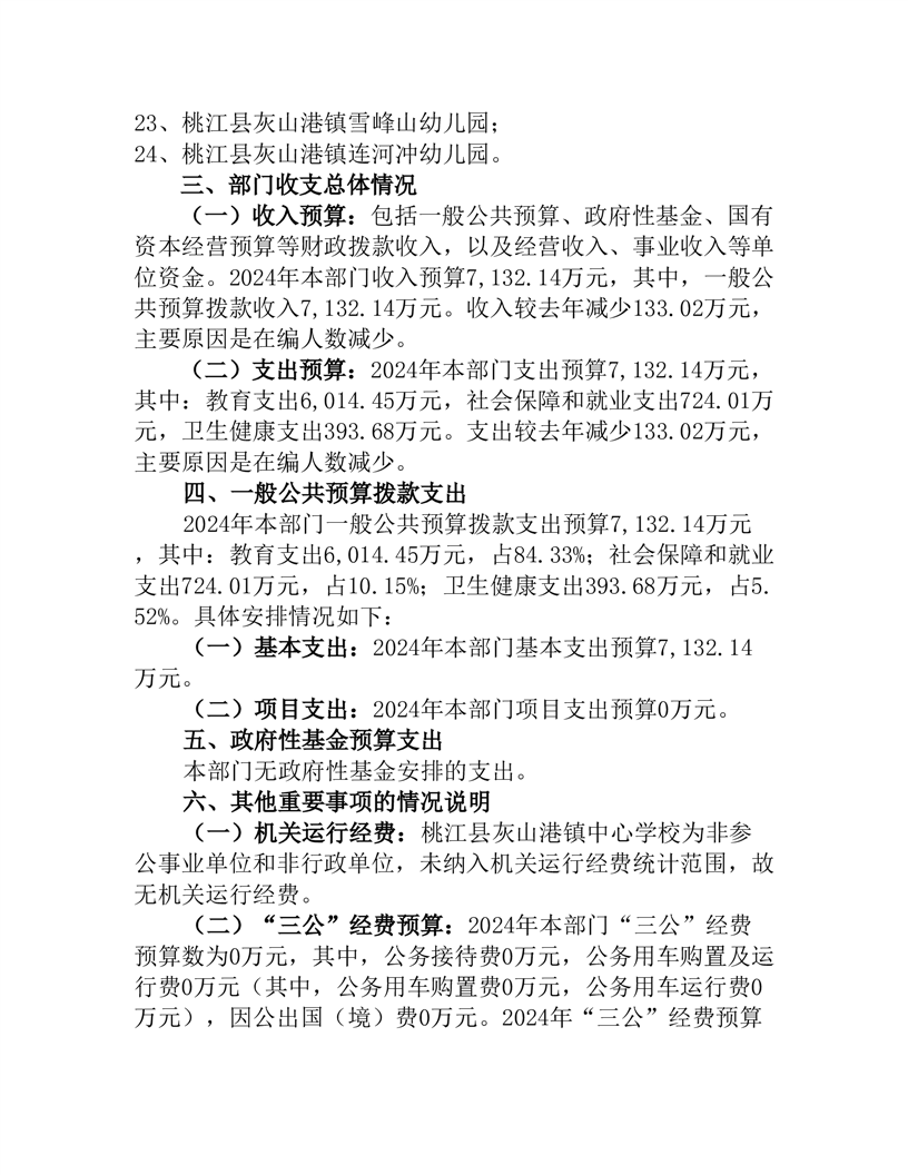 2024年度桃江县灰山港镇中心学校部门预算公开说明