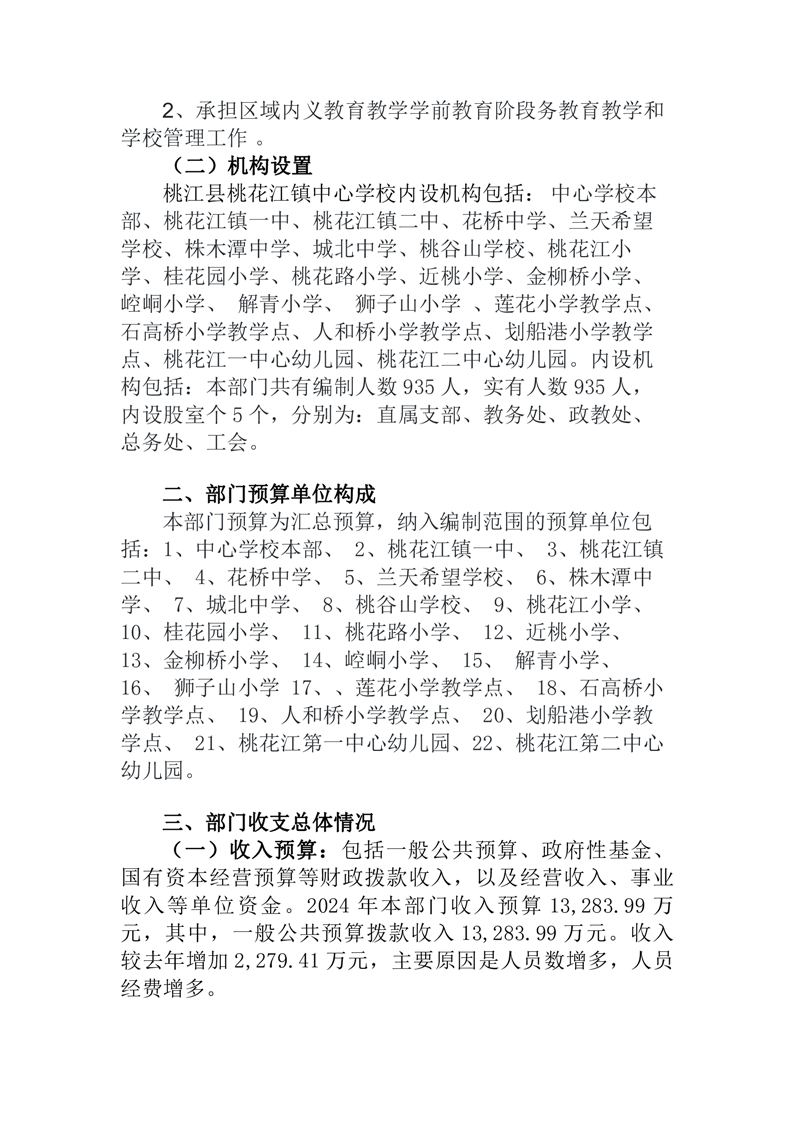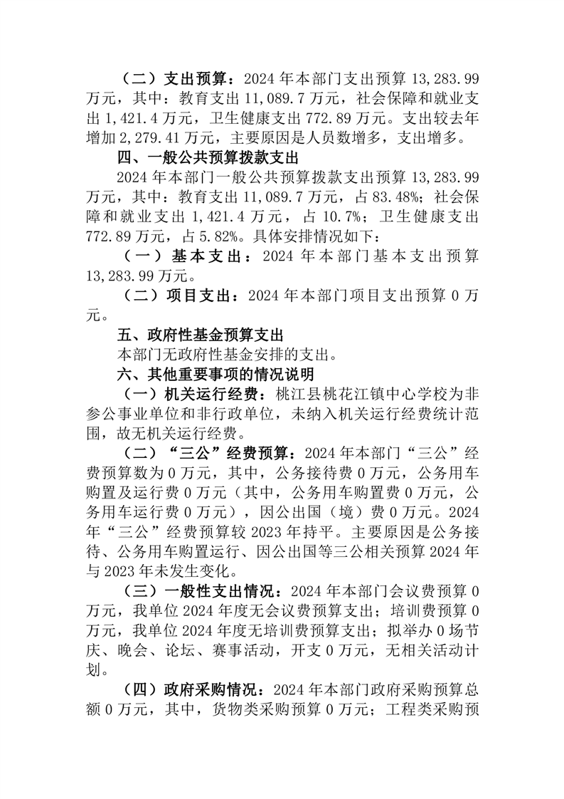 2024年度桃江县桃花江镇中心学校部门预算公开说明