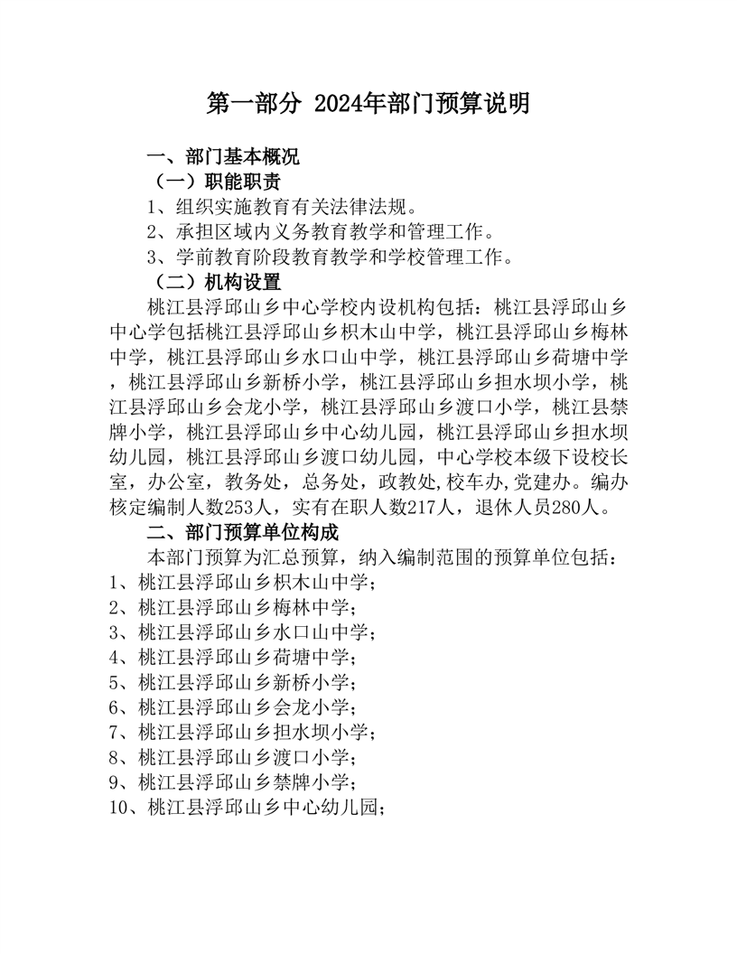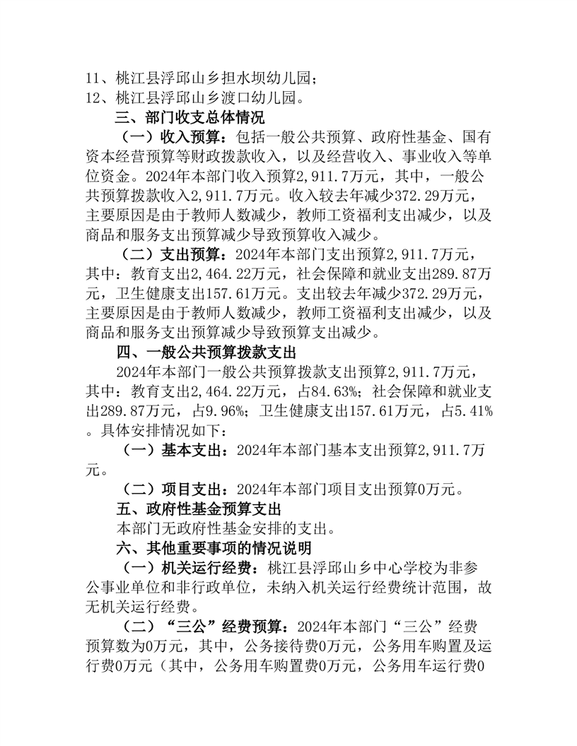 2024年度桃江县浮邱山乡中心学校部门预算公开说明