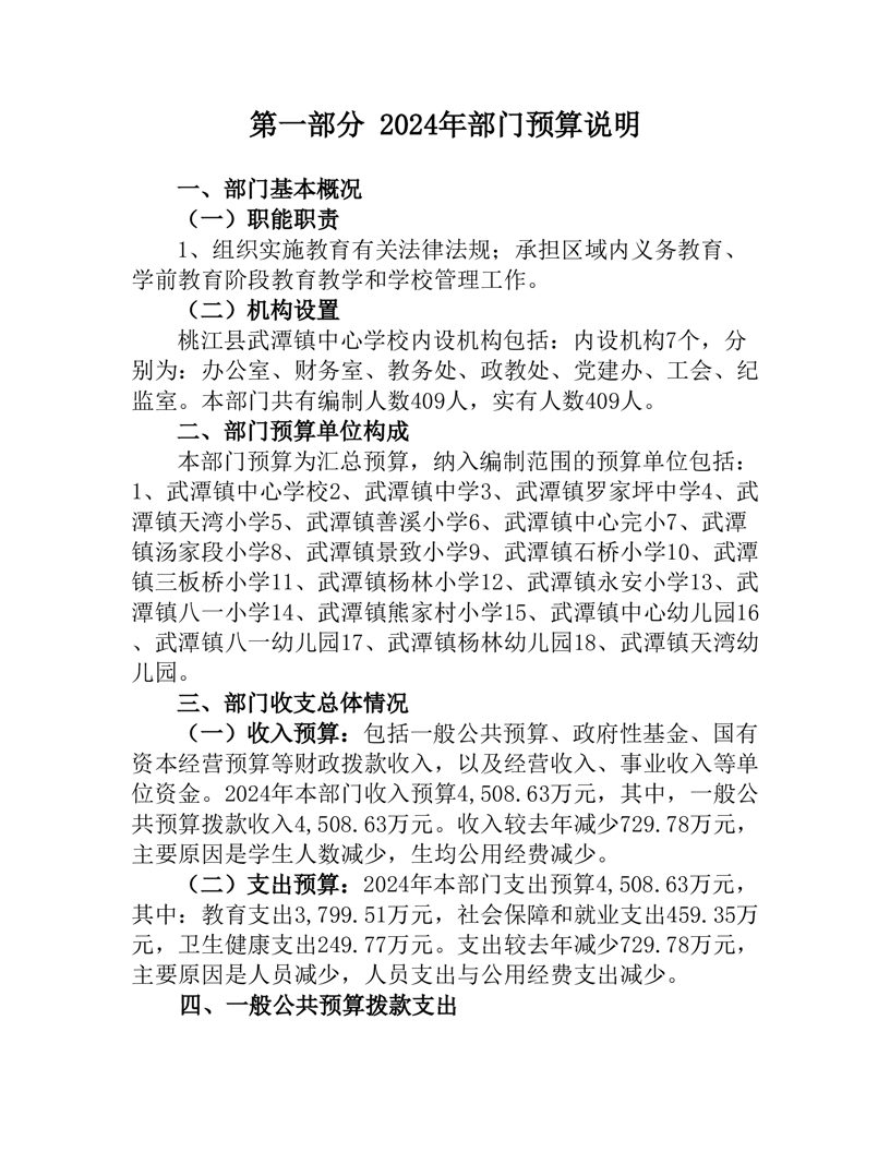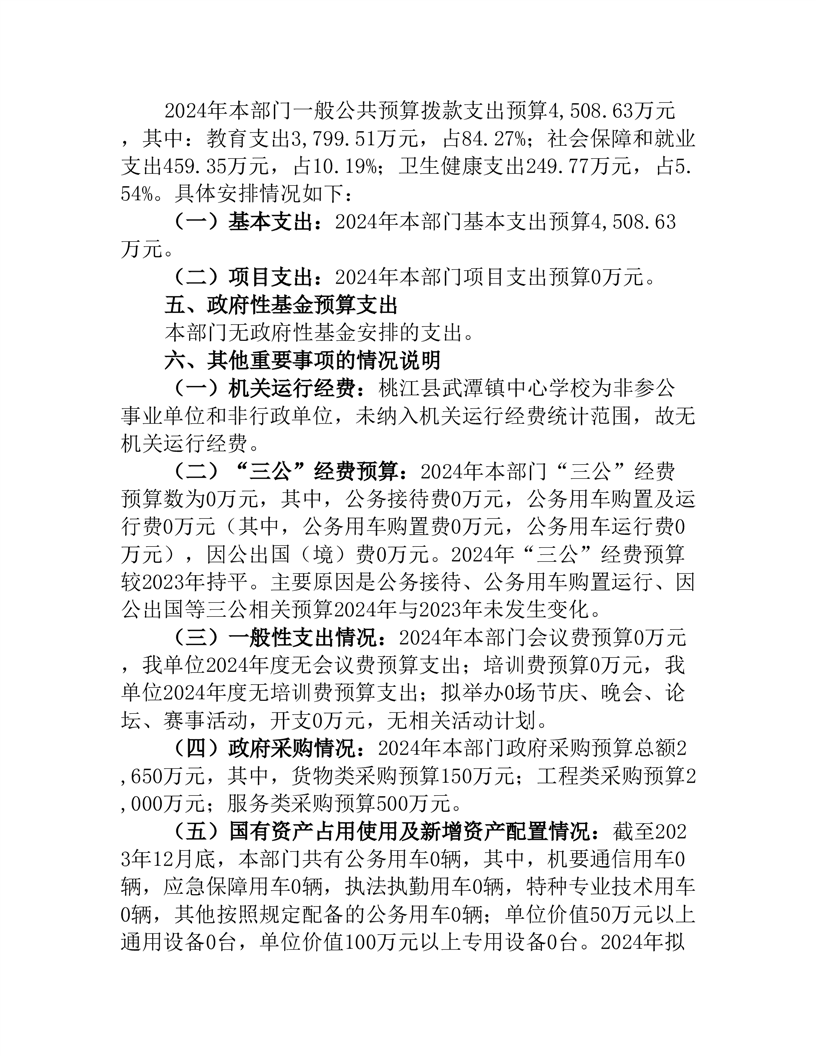2024年度桃江县武潭镇中心学校部门预算公开说明