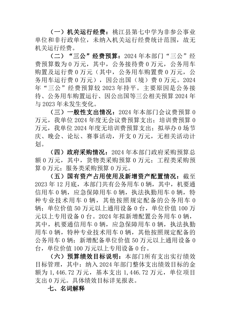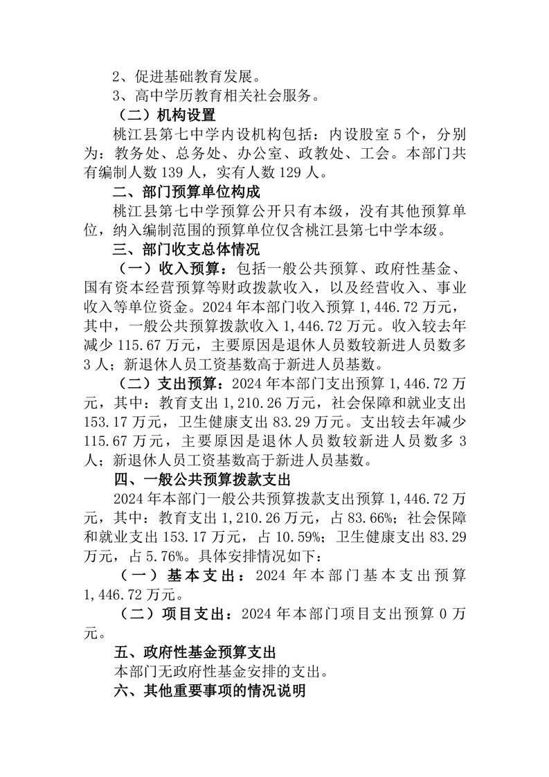 2024年度桃江县第七中学部门预算公开说明