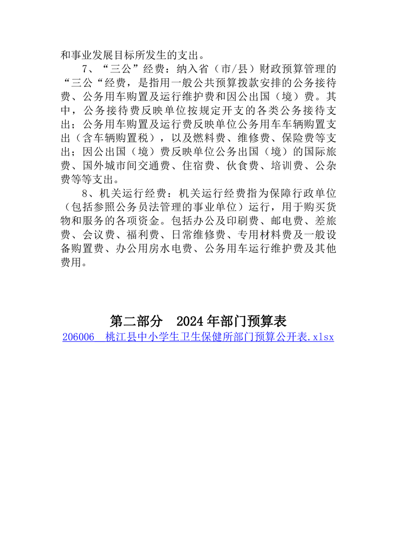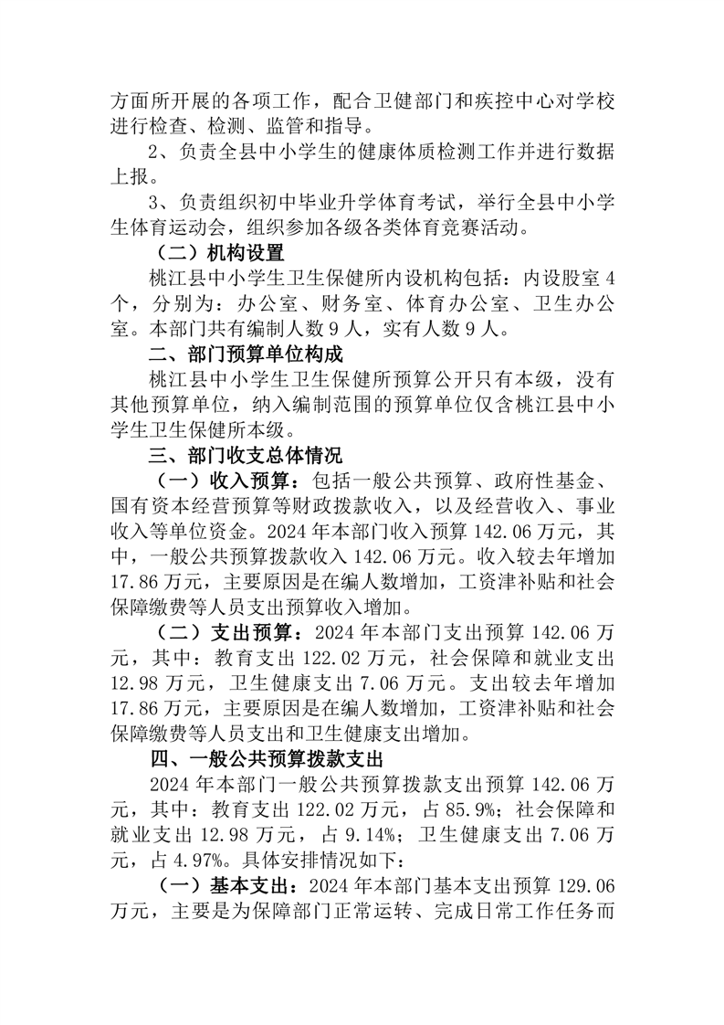 2024年度桃江县中小学生卫生保健所部门预算公开说明