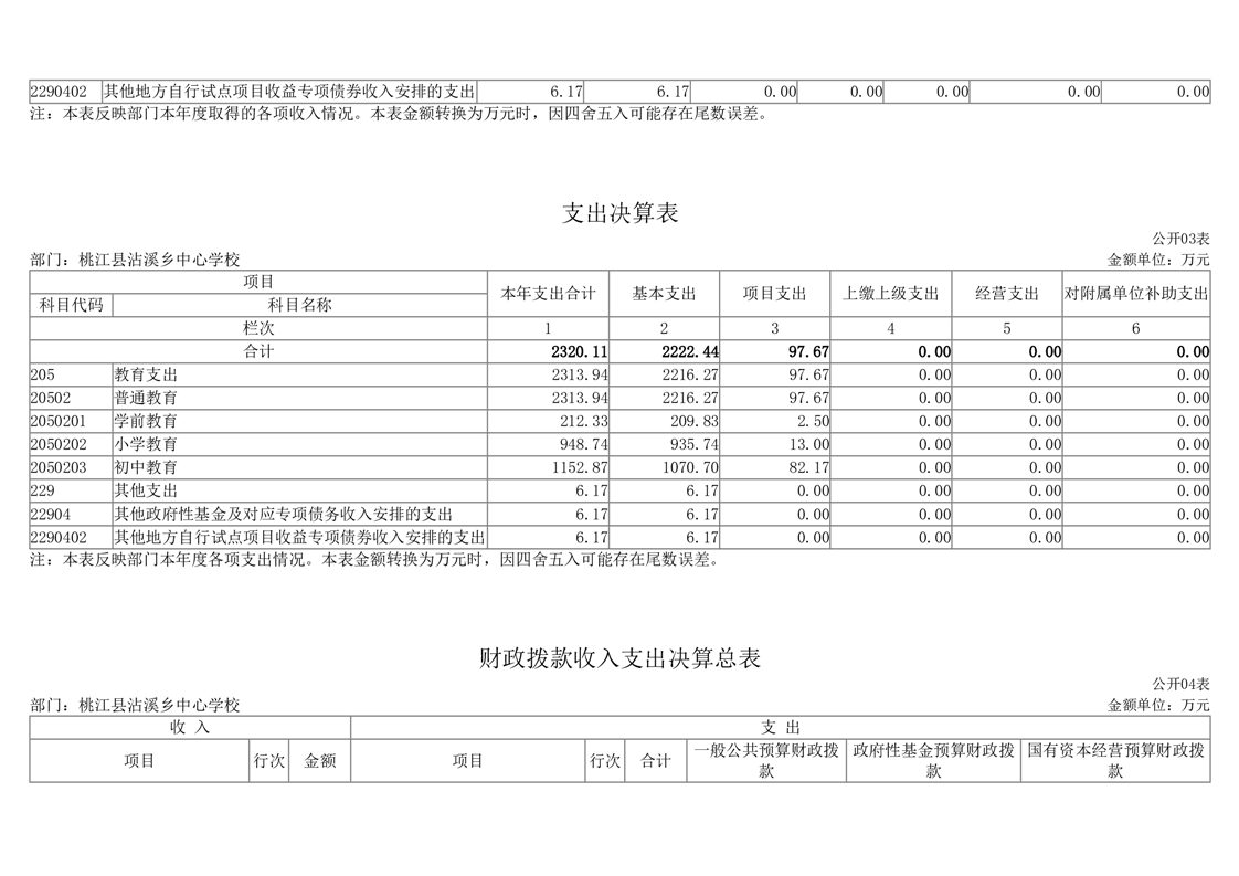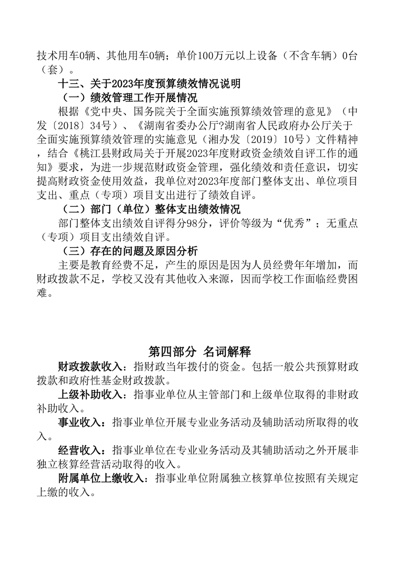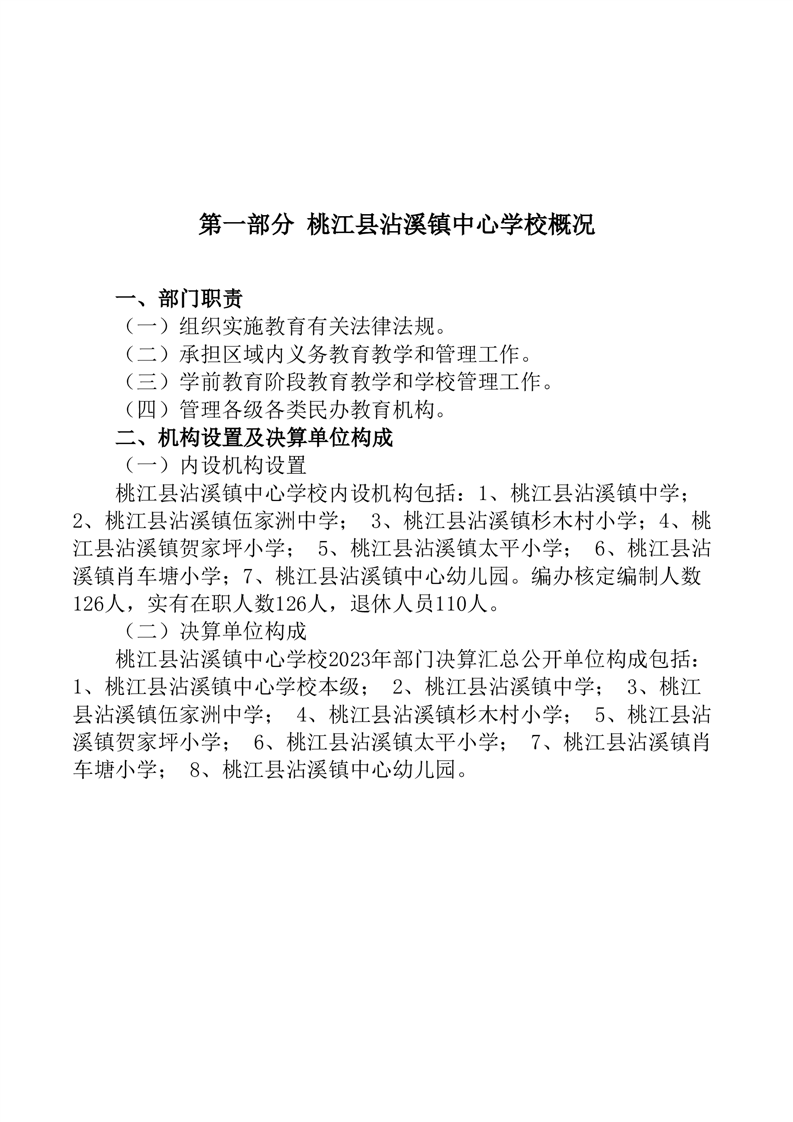 2023年度桃江县沾溪镇中心学校部门决算公开