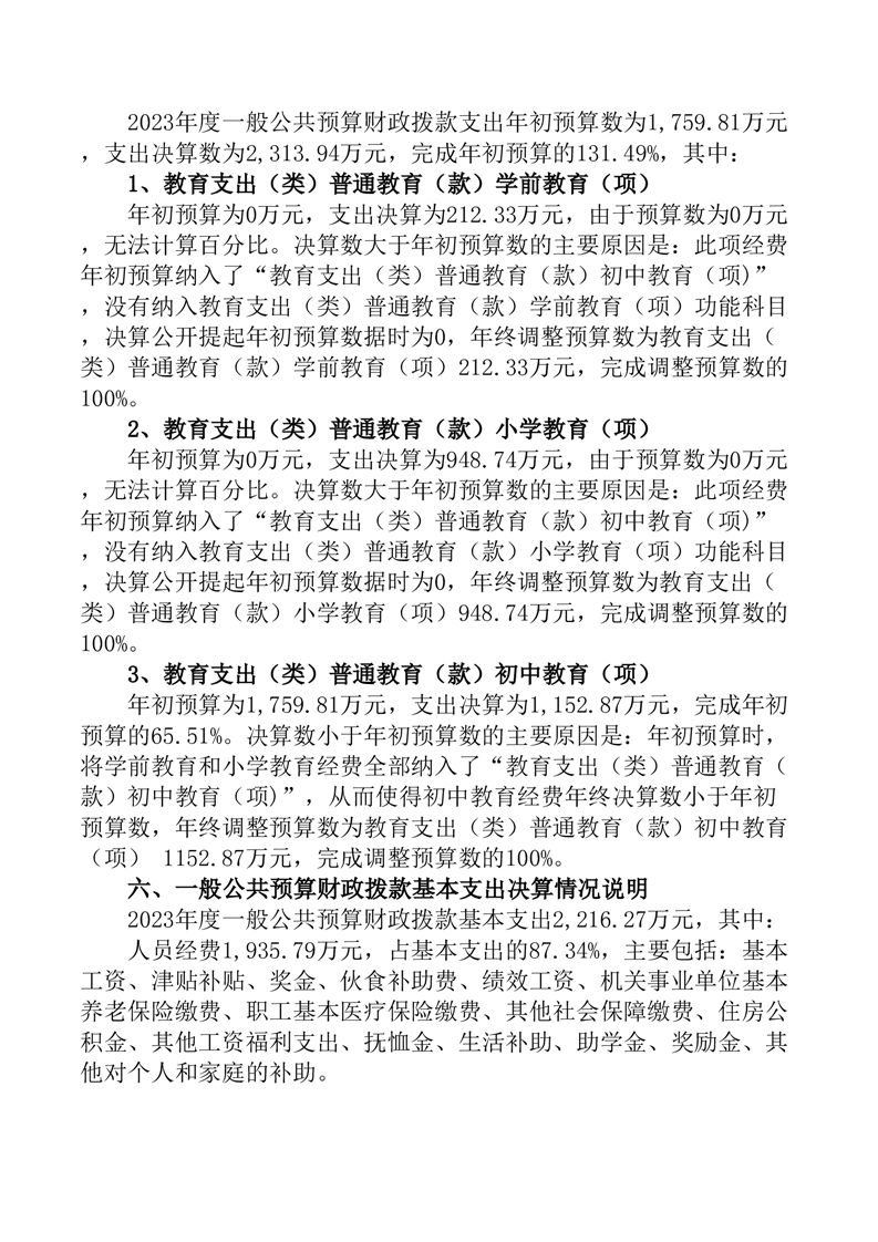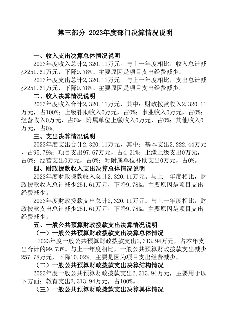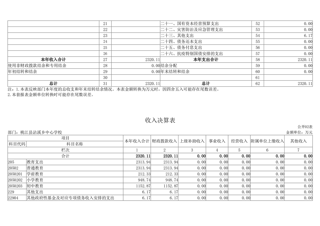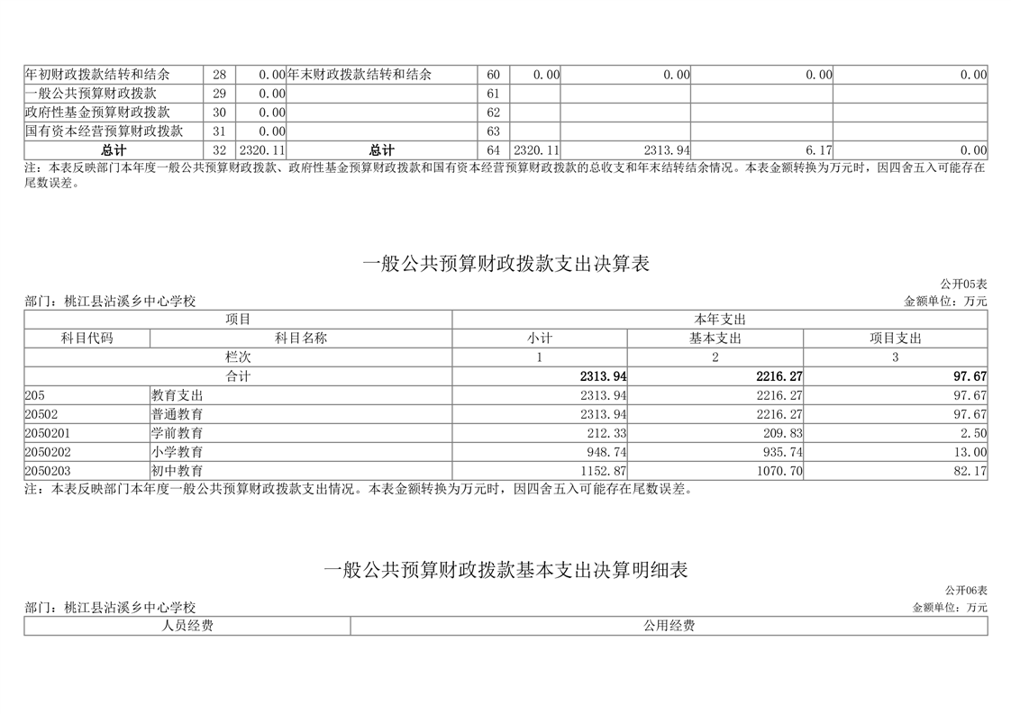 2023年度桃江县沾溪镇中心学校部门决算公开