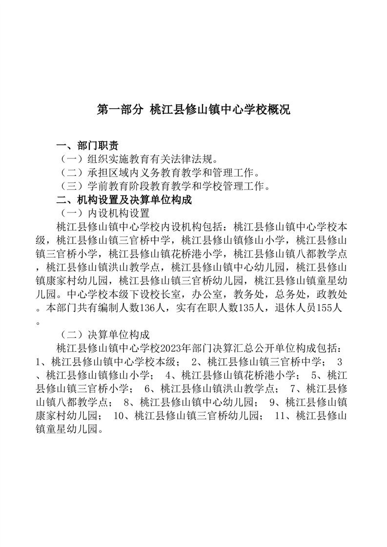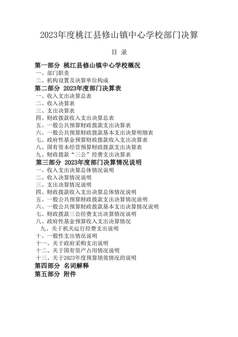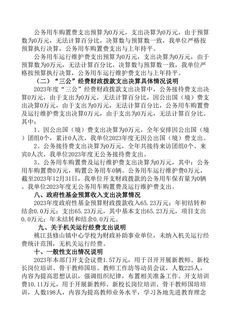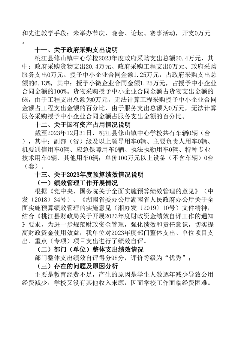 2023年度桃江县修山镇中心学校部门决算公开