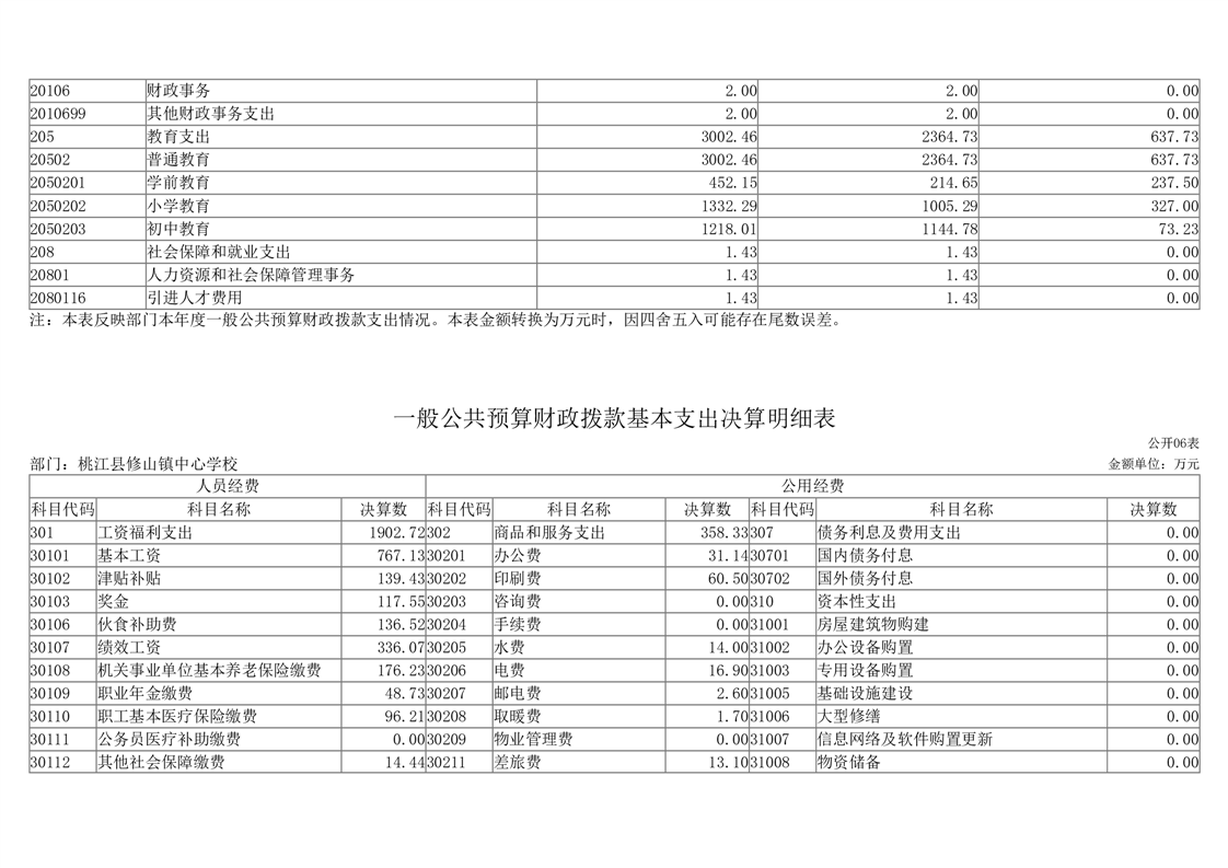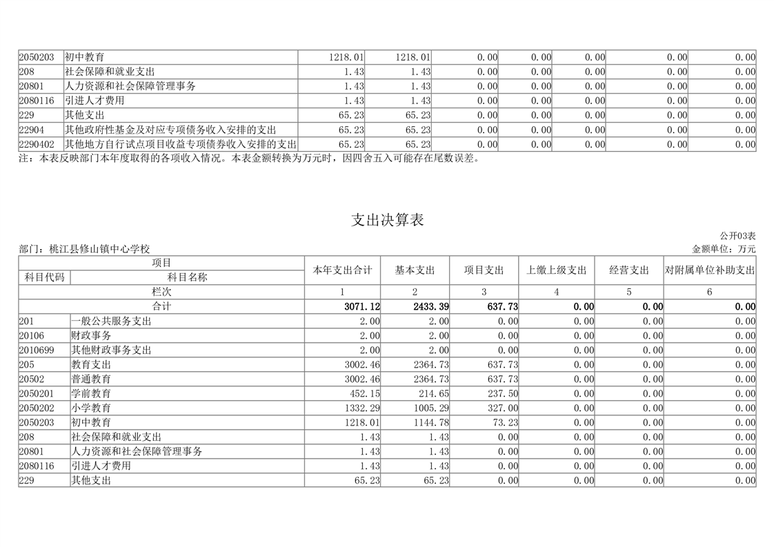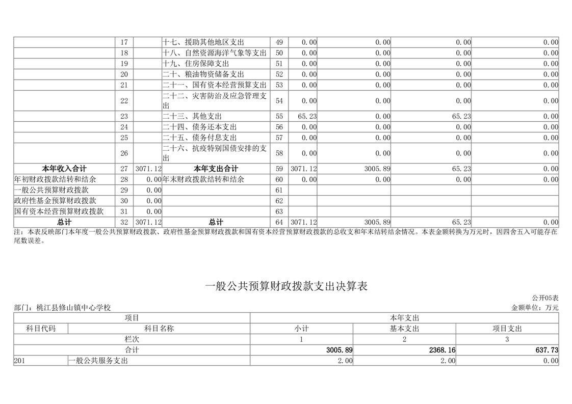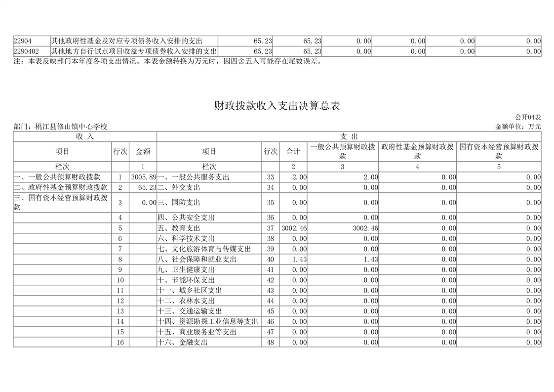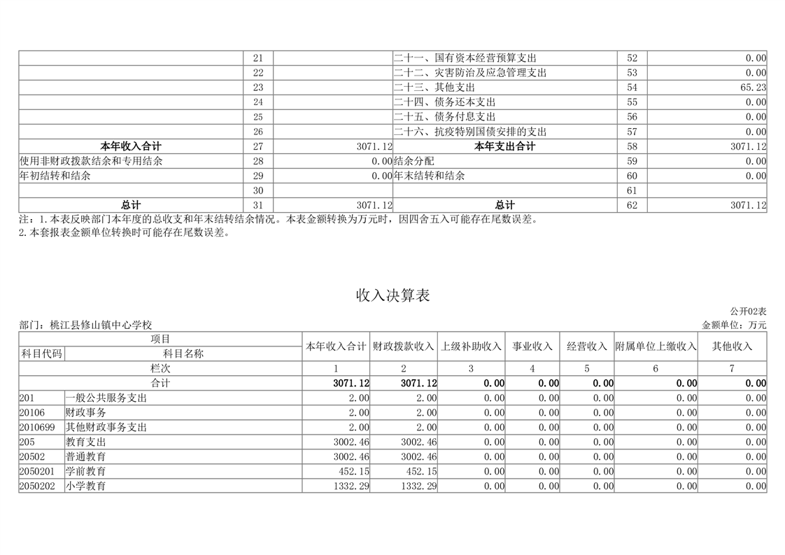 2023年度桃江县修山镇中心学校部门决算公开