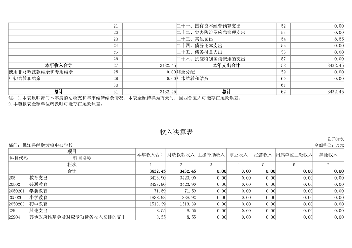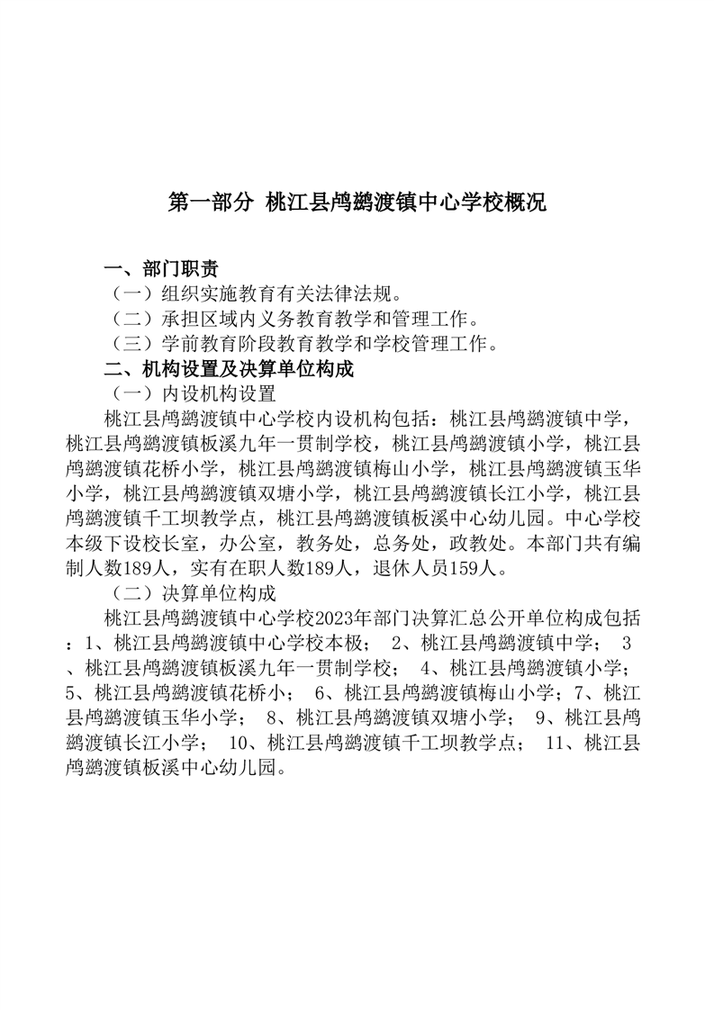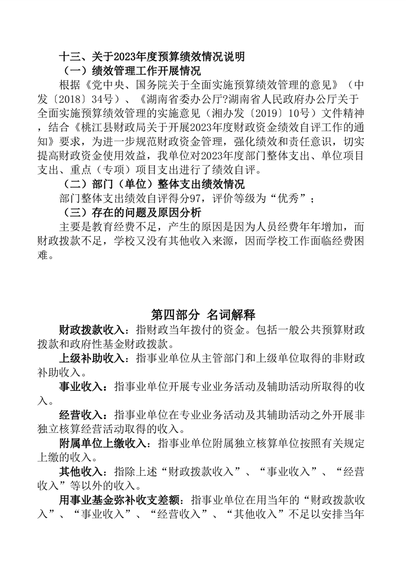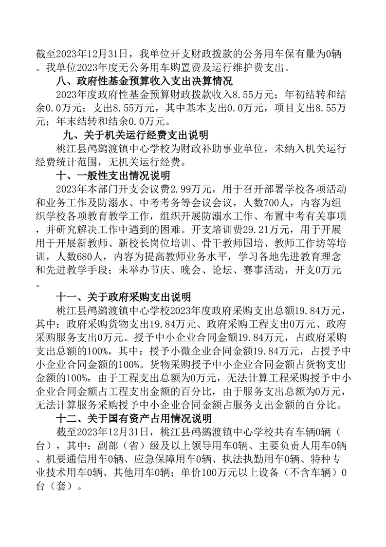 2023年度桃江县鸬鹚渡镇中心学校部门决算公开