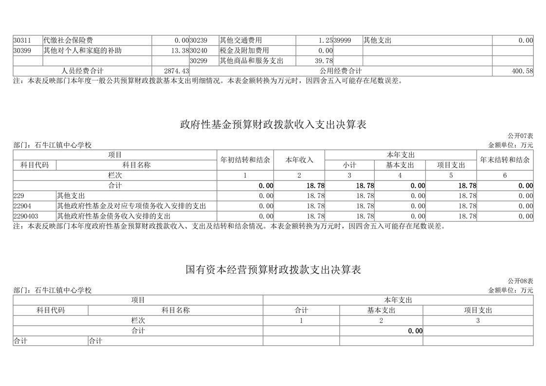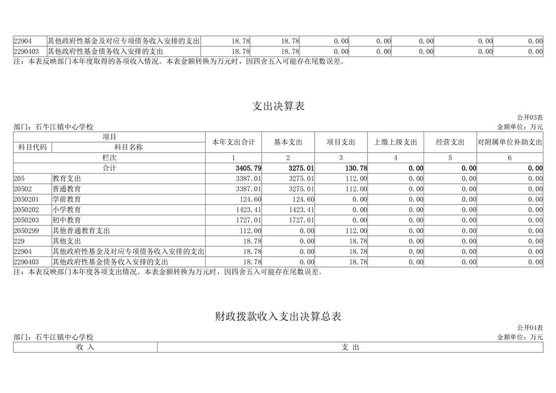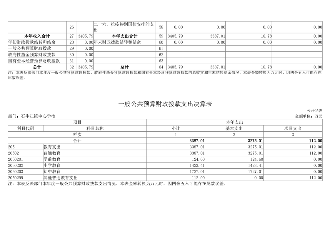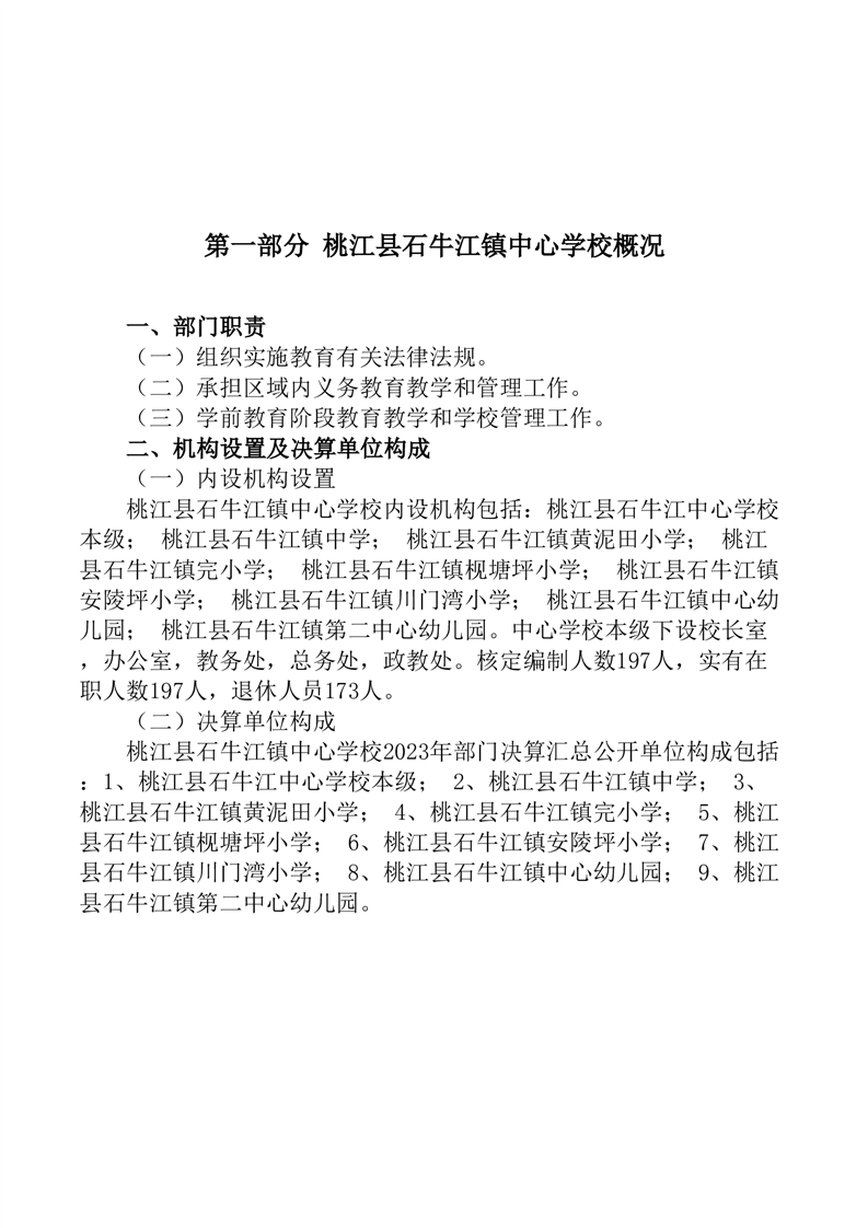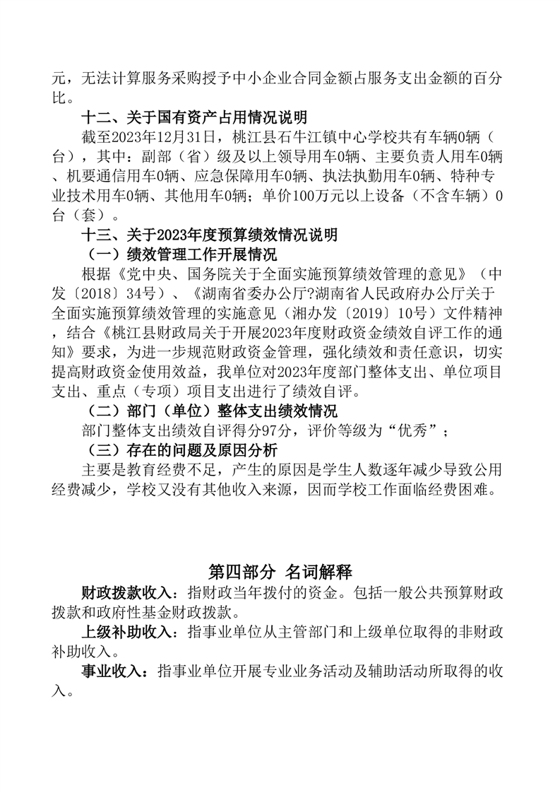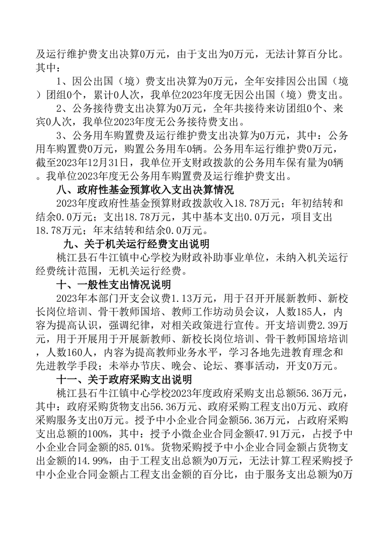 2023年度桃江县石牛江镇中心学校部门决算公开