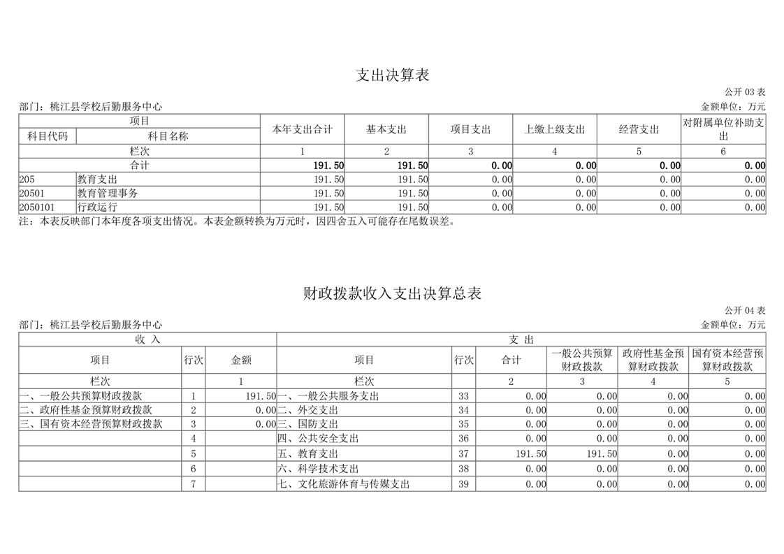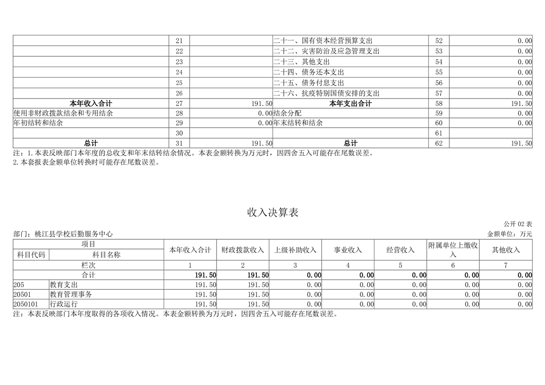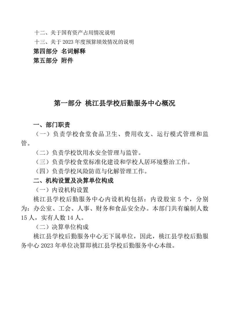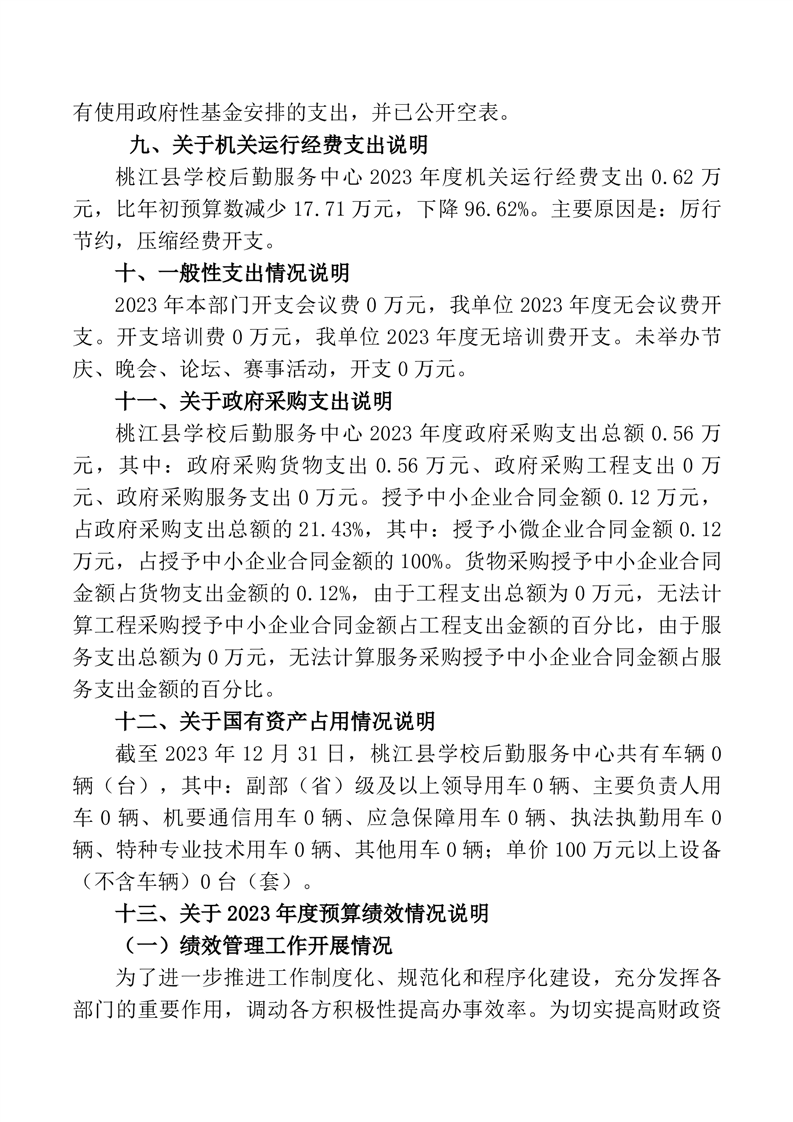 2023年度桃江县学校后勤服务中心部门决算公开