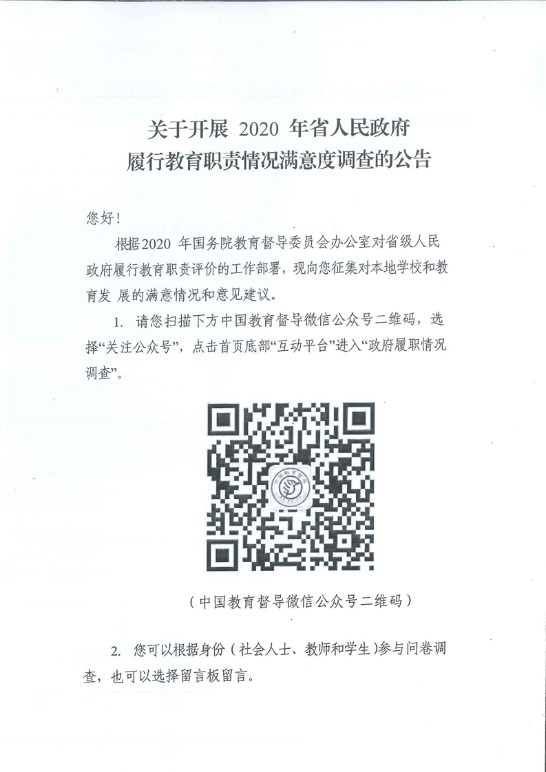 关于开展2020年省人民政府履行教育职责情况满意度调查的公告