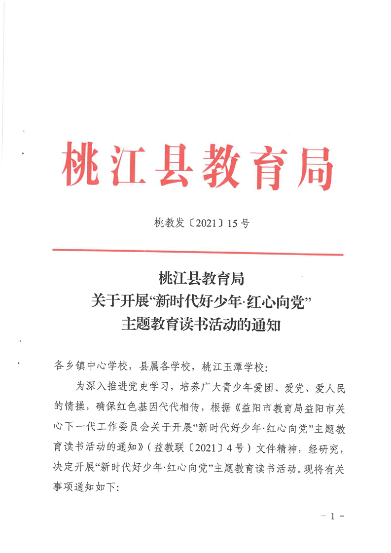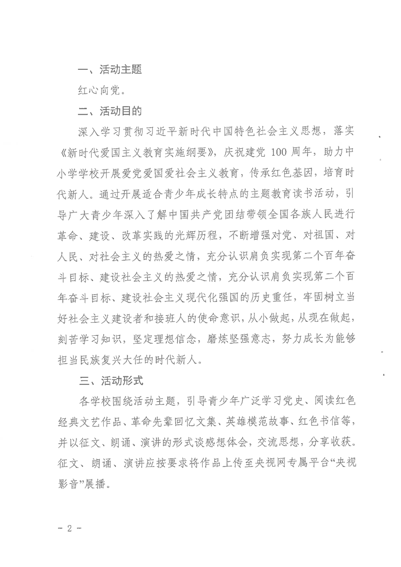 15号2021年关于开展“新时代好少年 红心向党”主题教育读书活动的通知