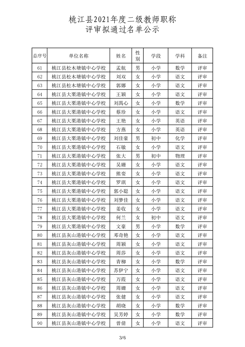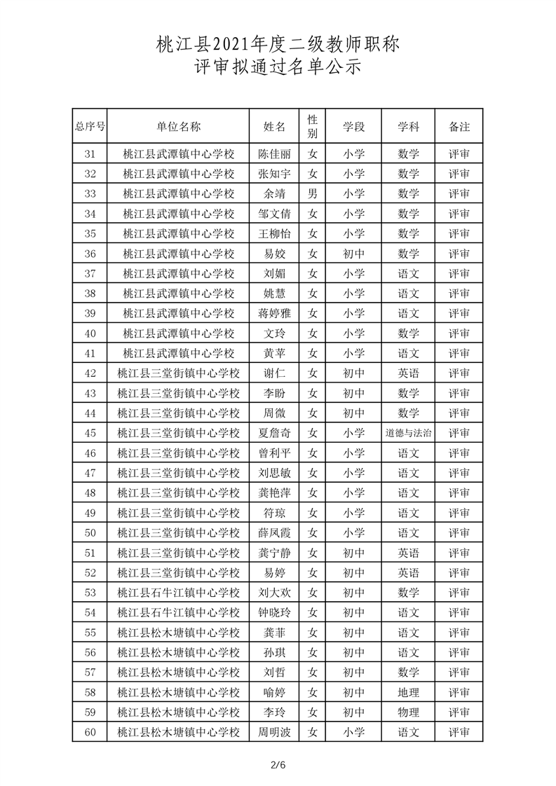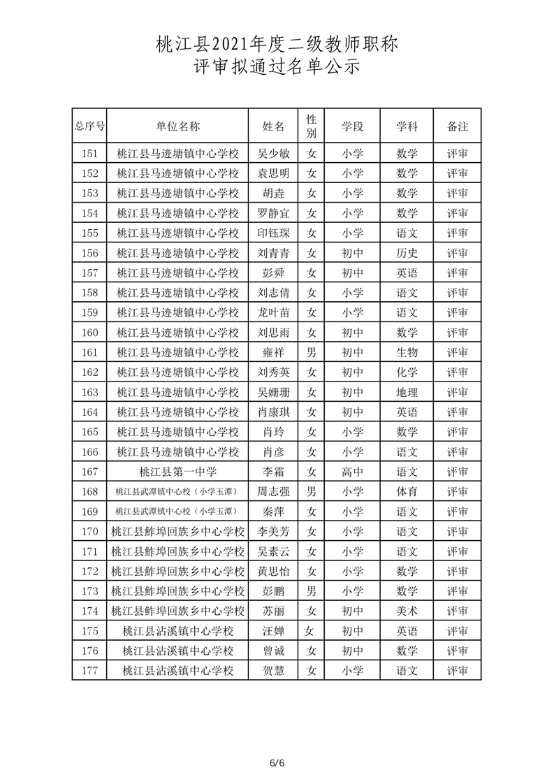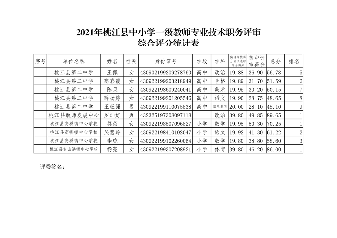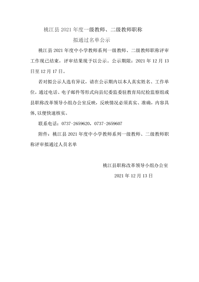 桃江县2021年一级、二级评审拟通过结果公示