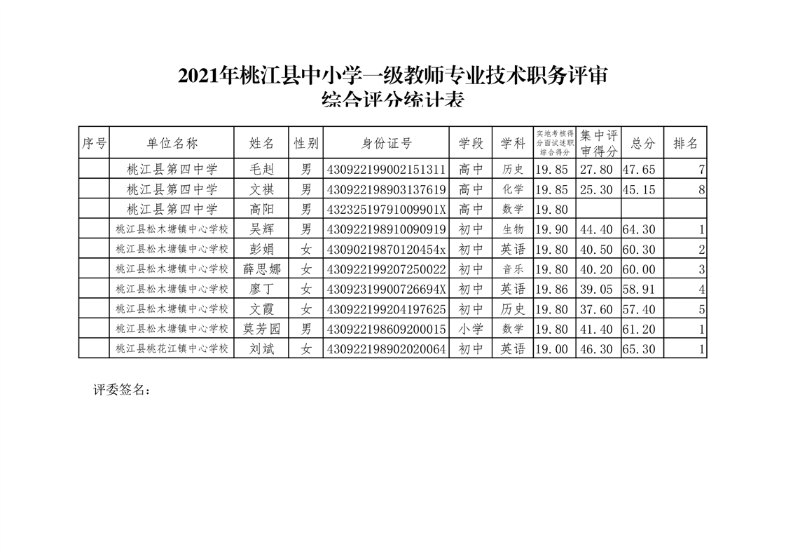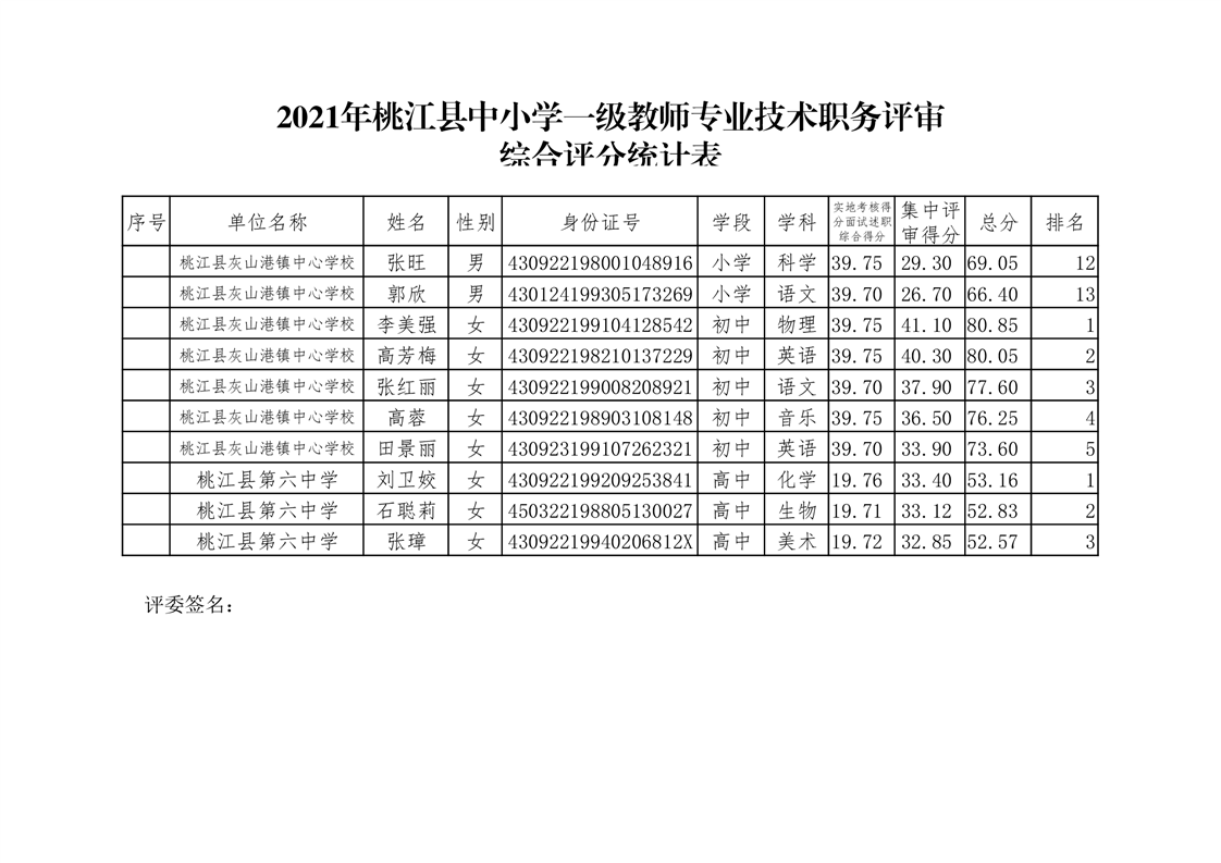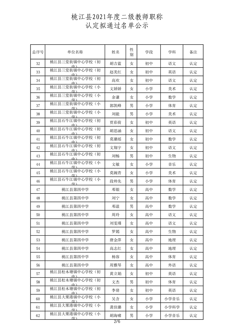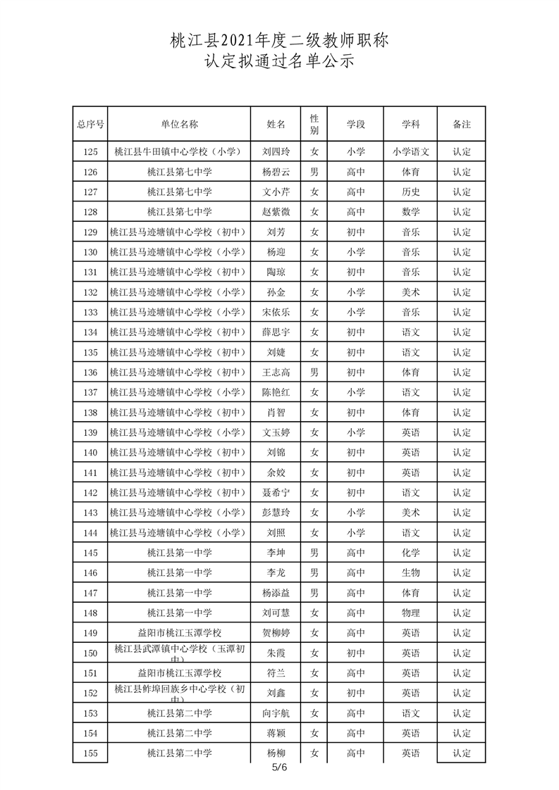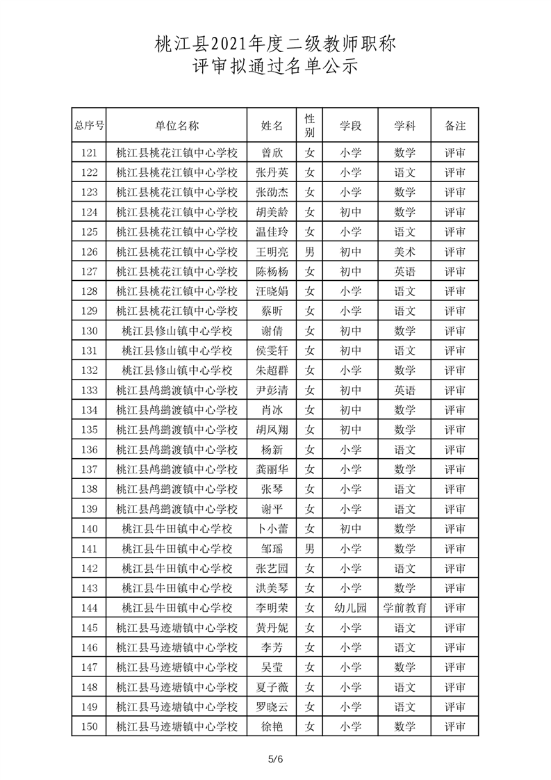 桃江县2021年一级、二级评审拟通过结果公示