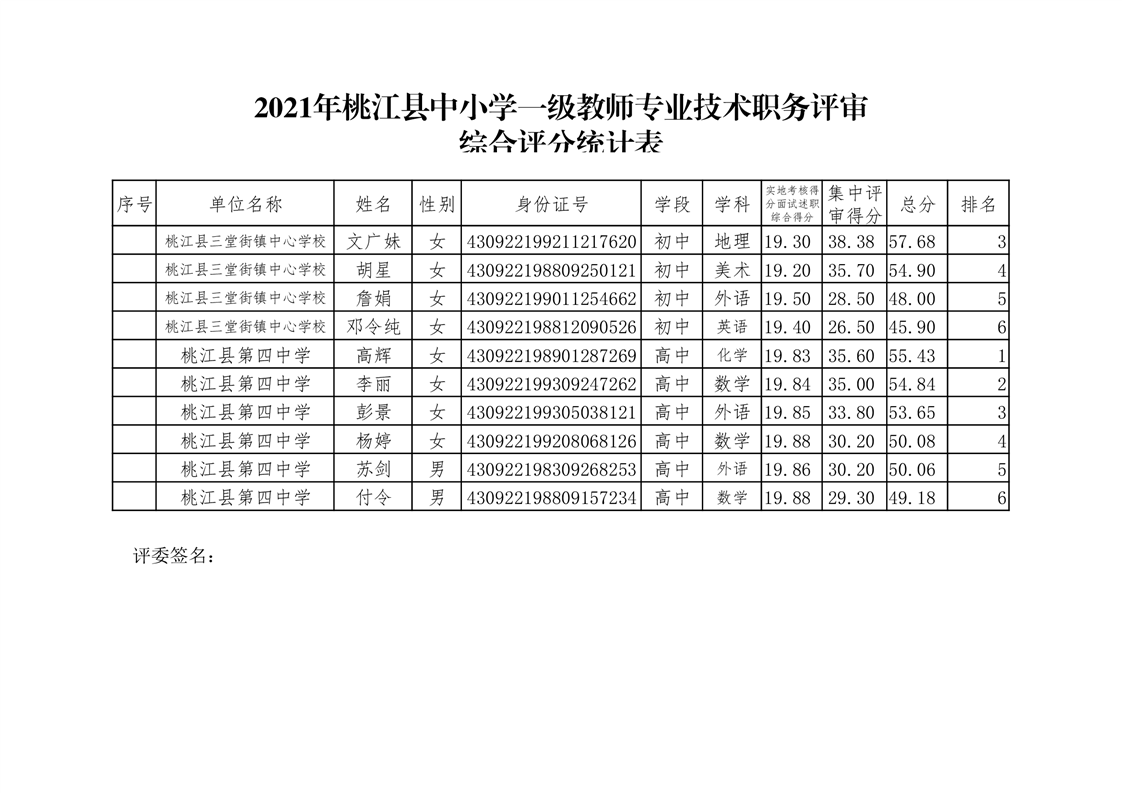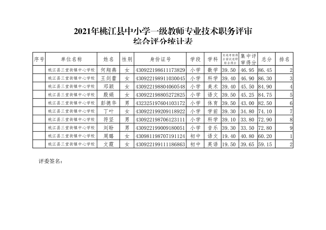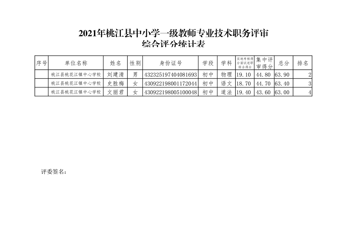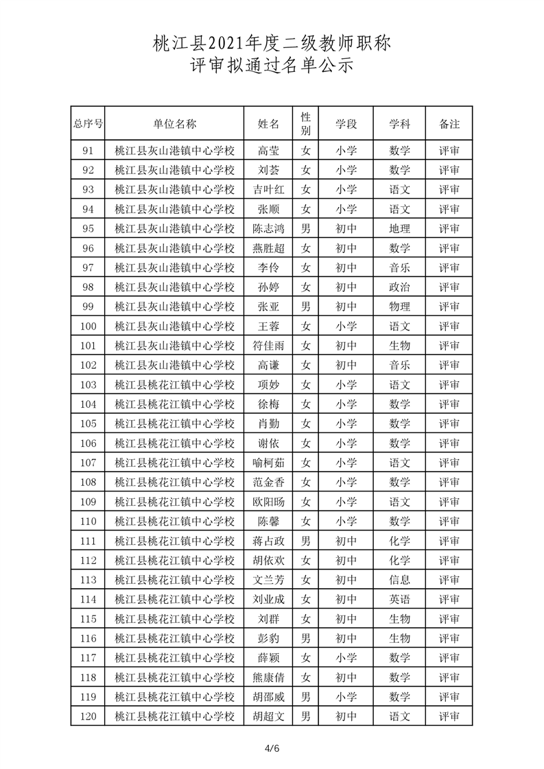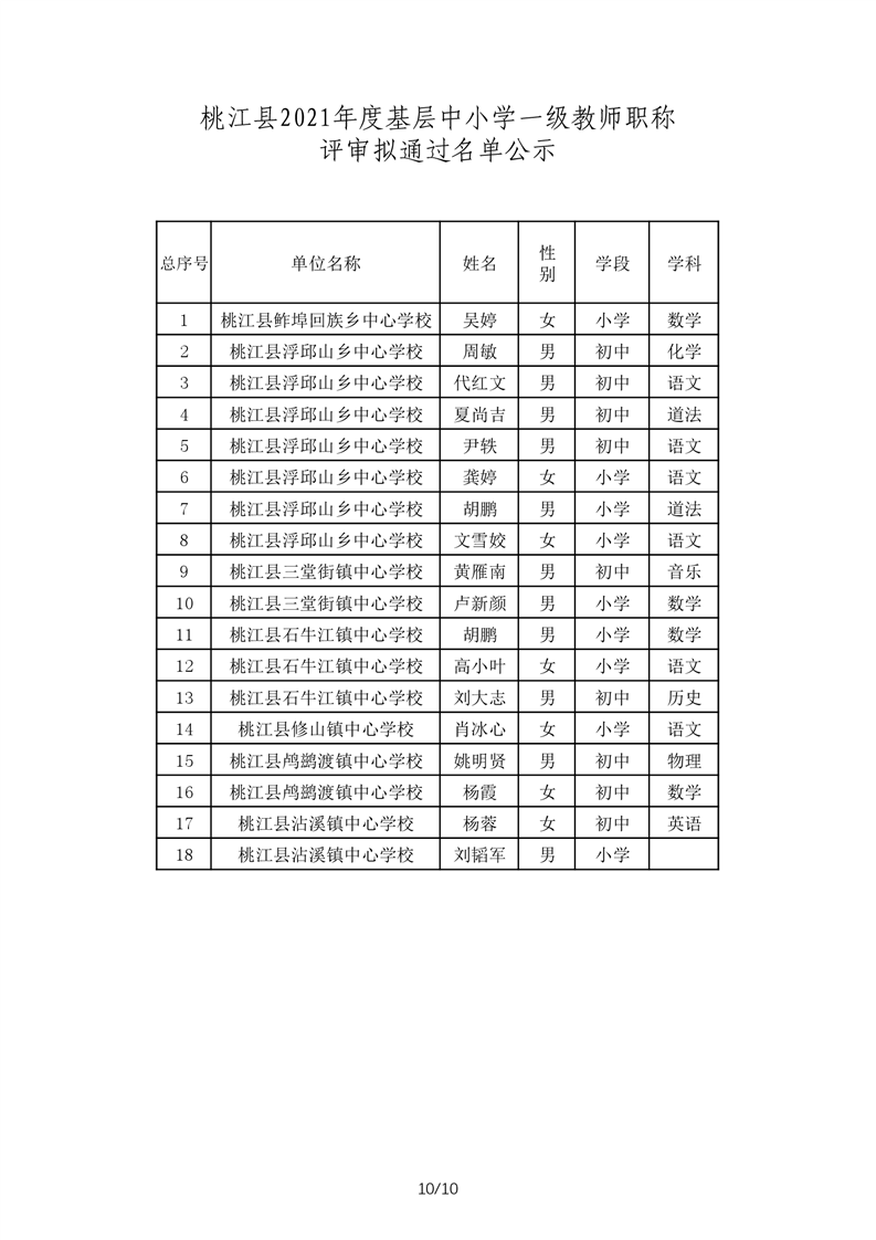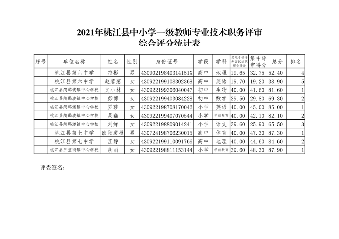 桃江县2021年一级、二级评审拟通过结果公示