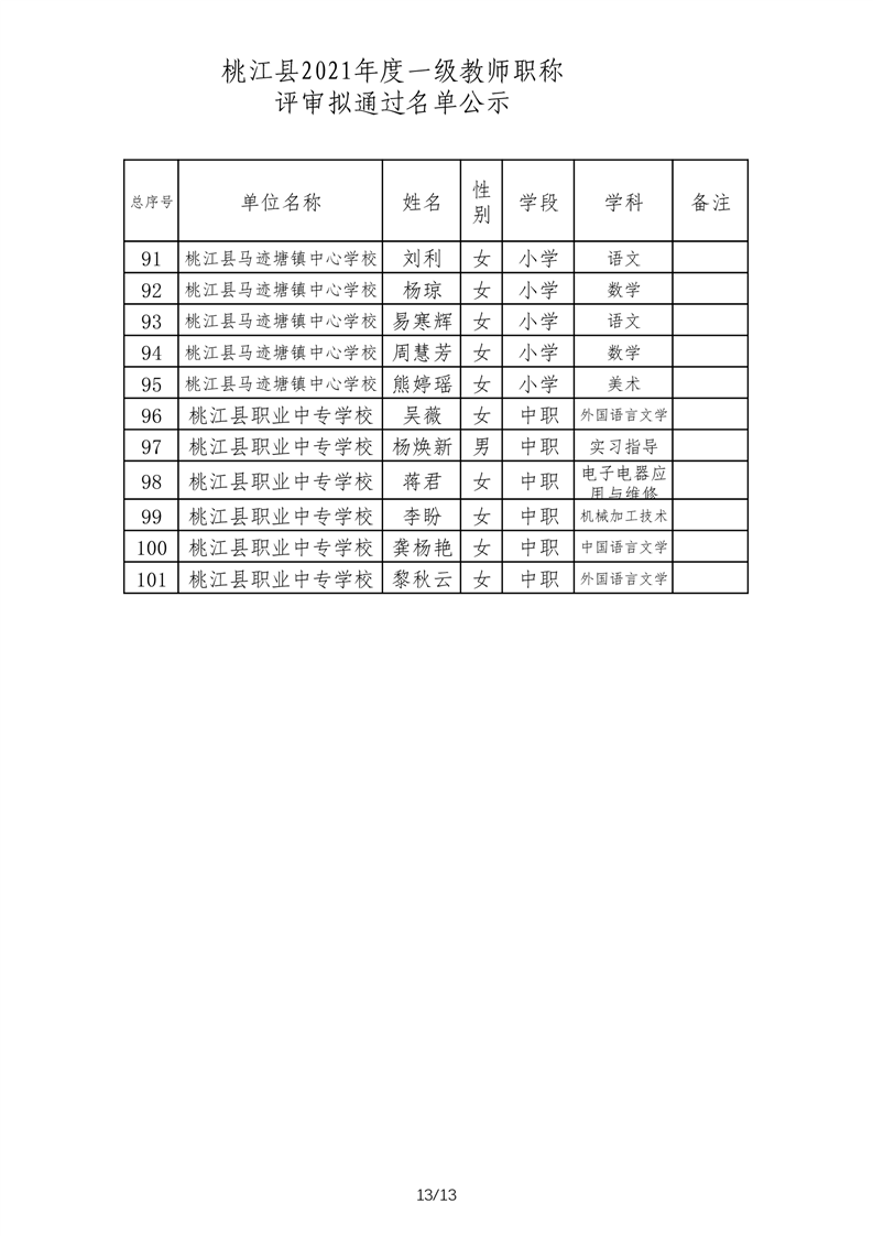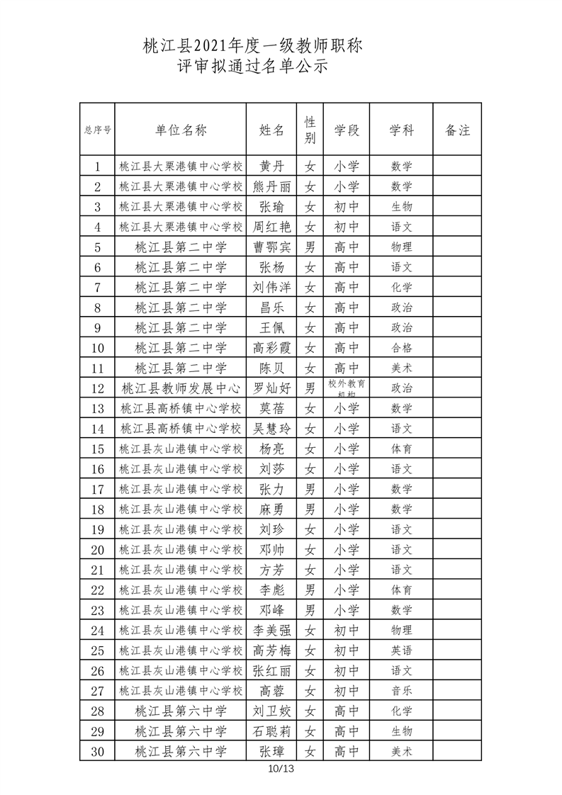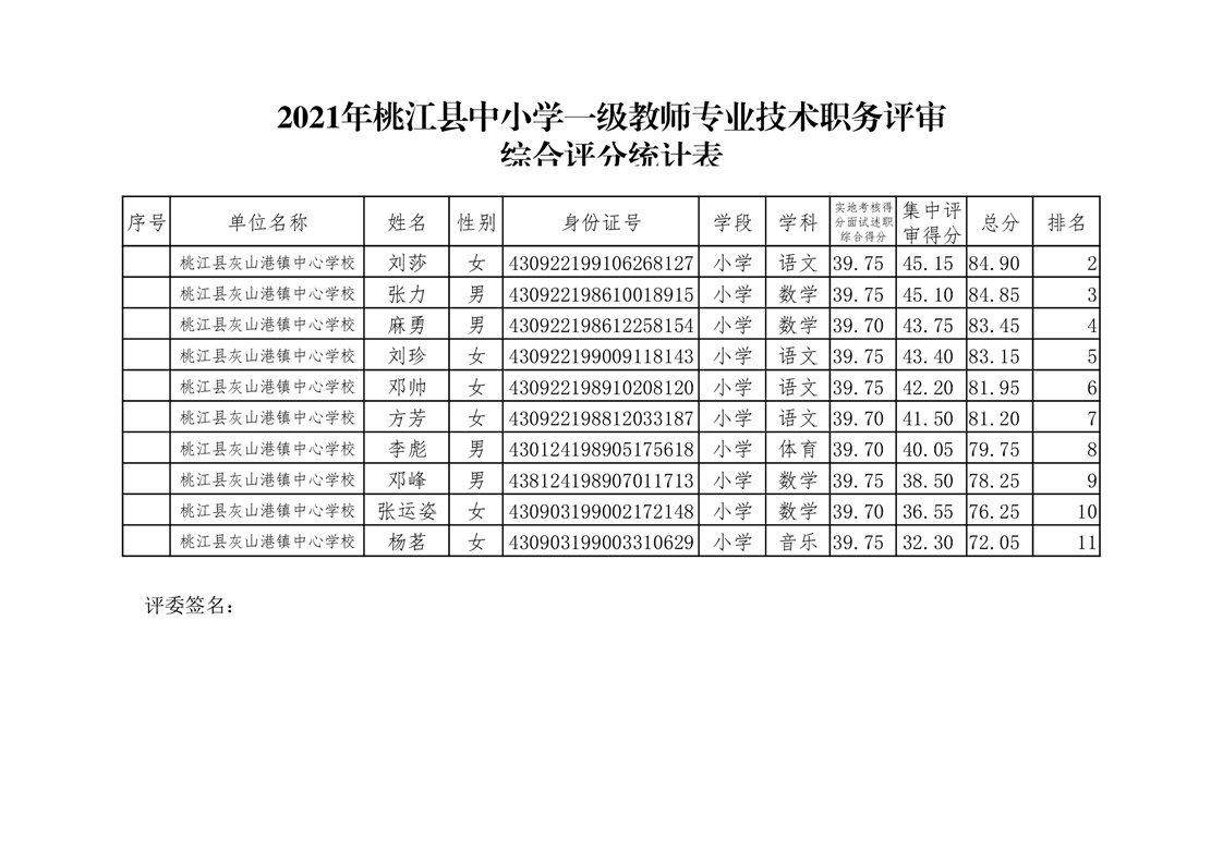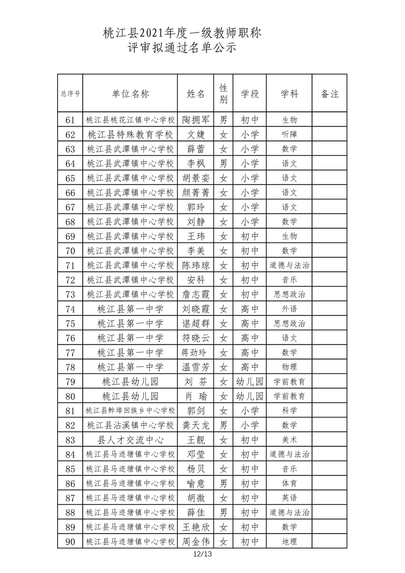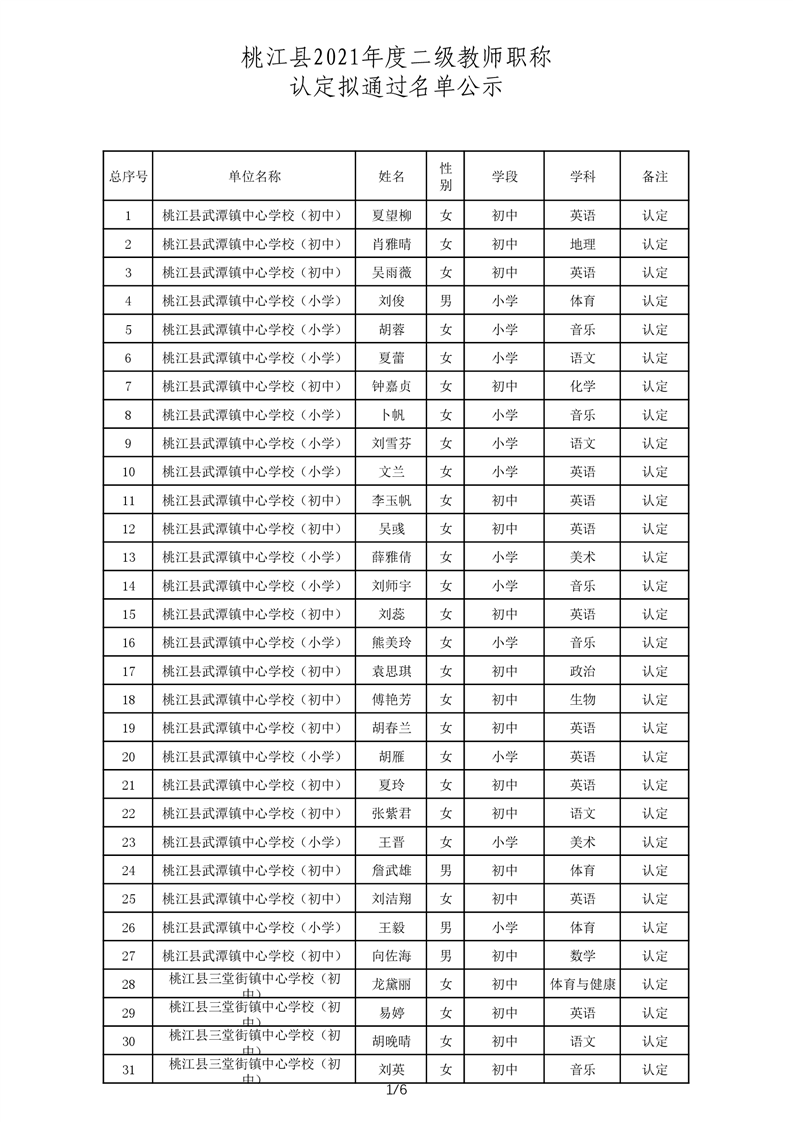 桃江县2021年一级、二级评审拟通过结果公示