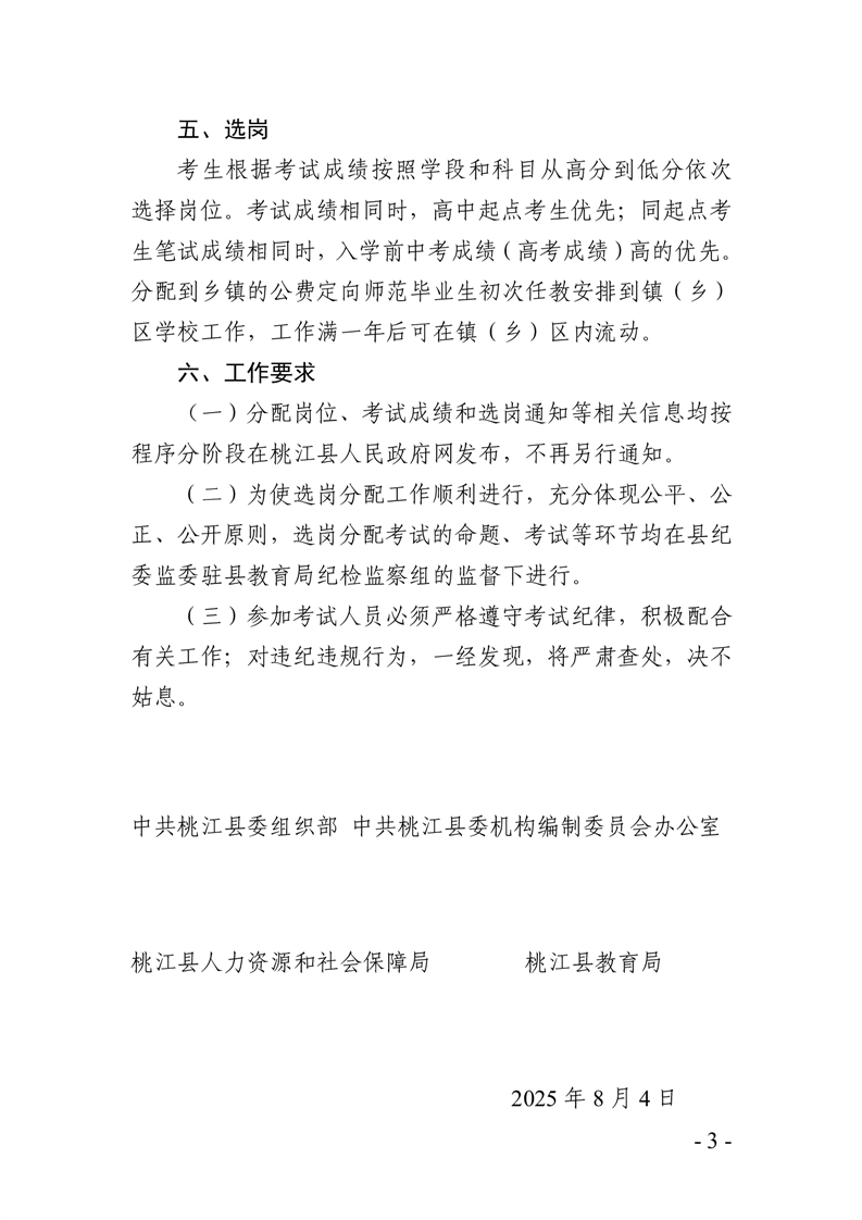 桃江县2025届公费定向师范毕业生选岗考试公告