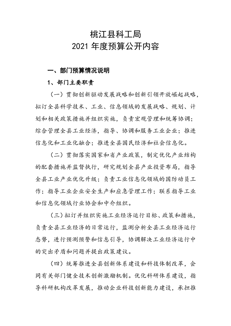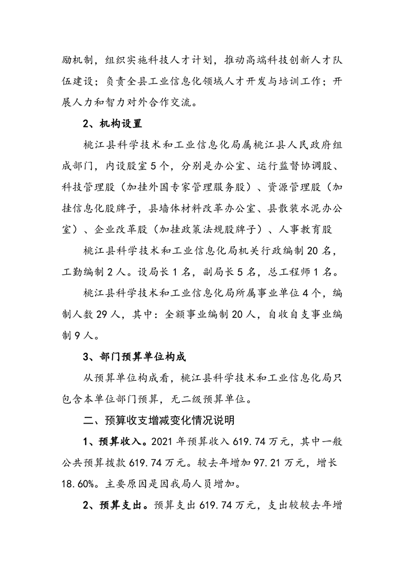 桃江县科学技术和工业信息化局 2021 年度部门预算公开