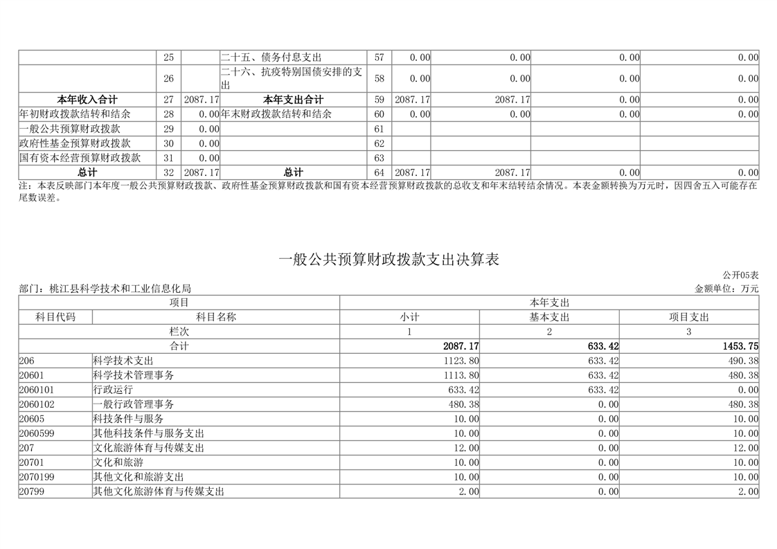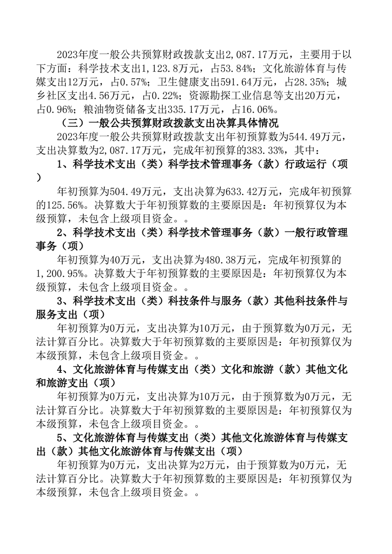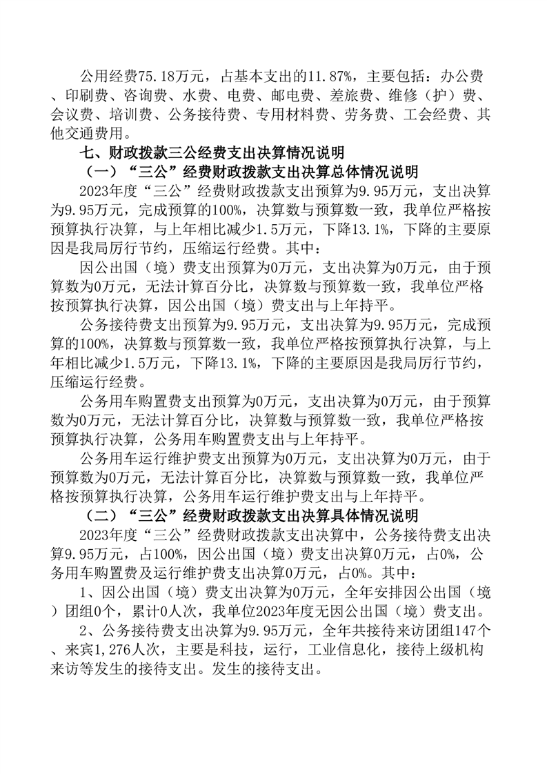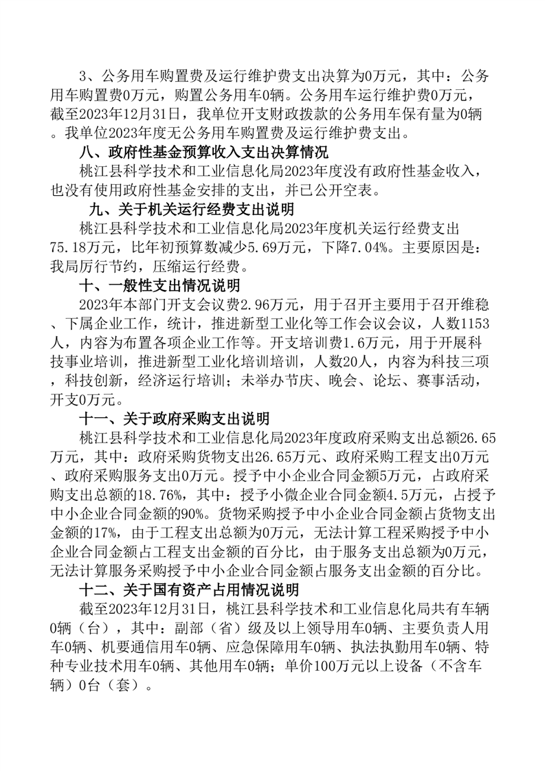 桃江县科学技术和工业信息化局2023年部门决算公开说明