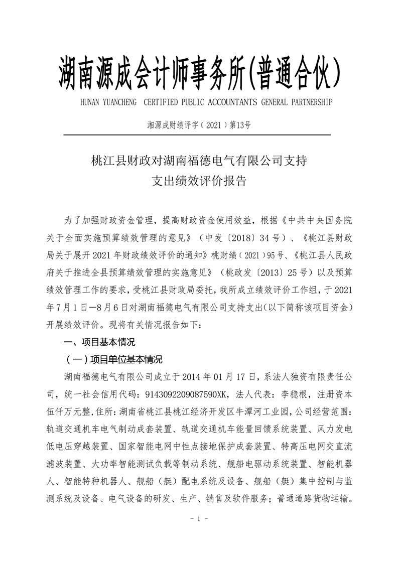 湖南福德专项资金绩效评价报告