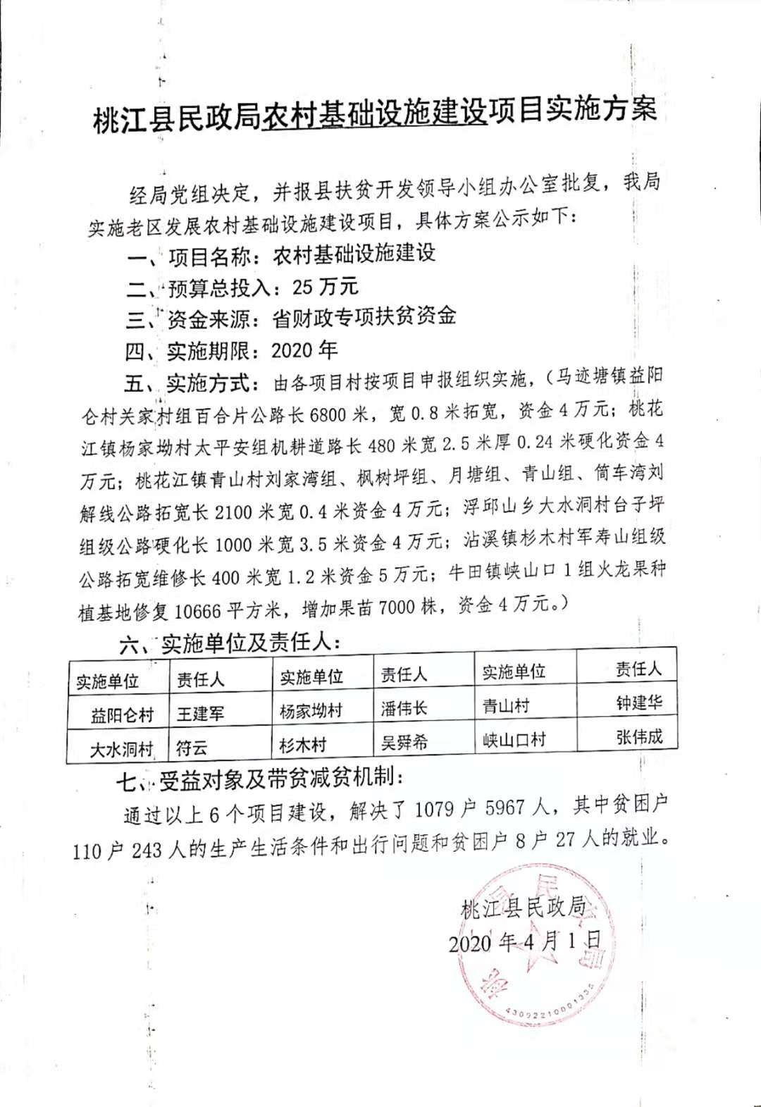 桃江县民政局2020年农村基础设施建设项目实施方案