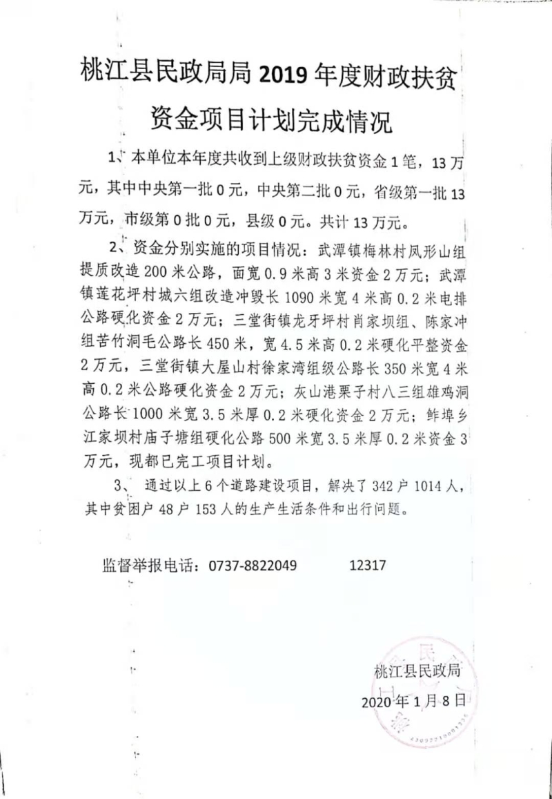 桃江县民政局2019年度财政扶贫资金项目计划完成情况公示