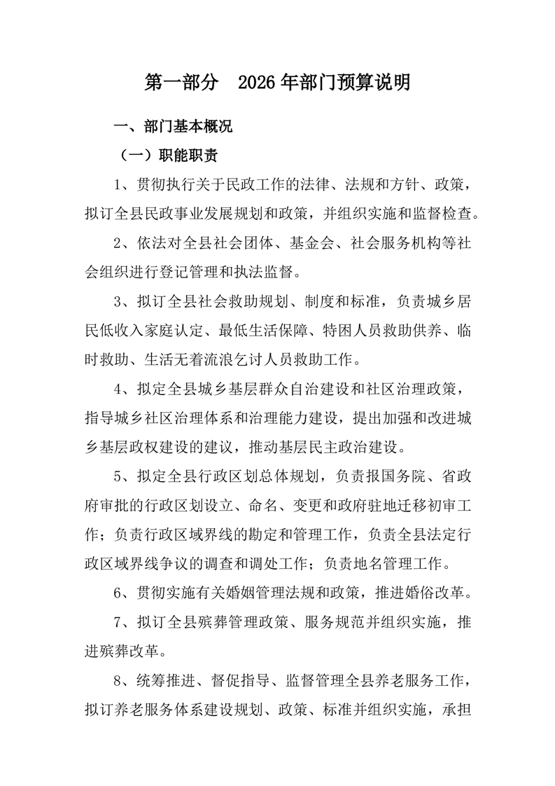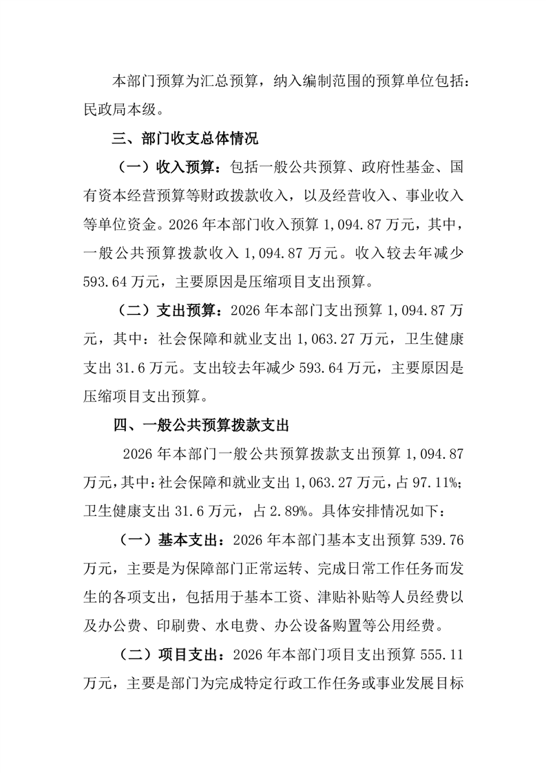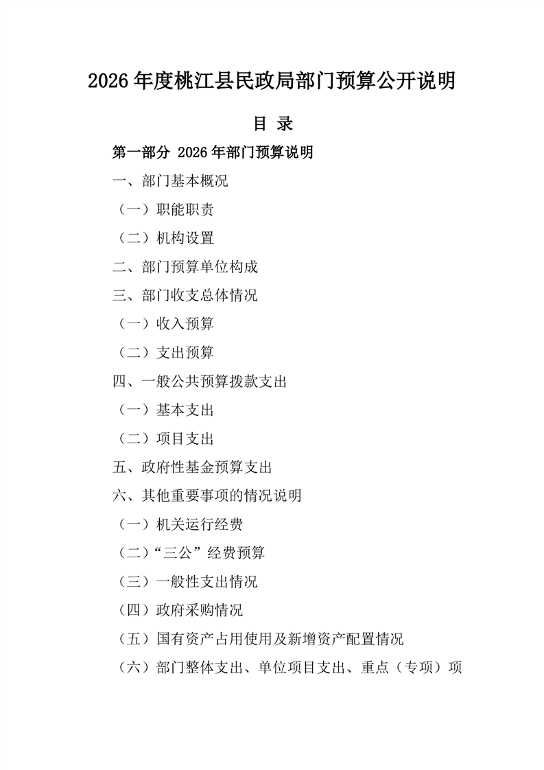 2026年度桃江县民政局部门预算公开说明