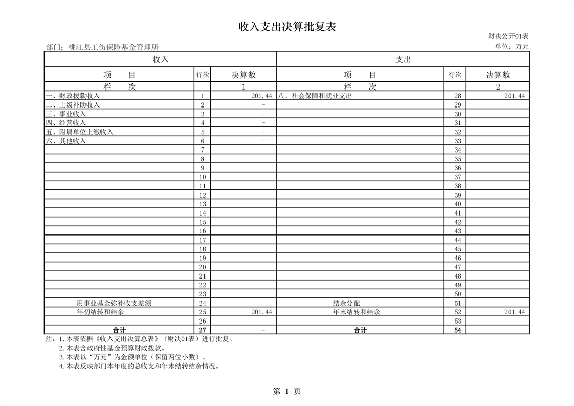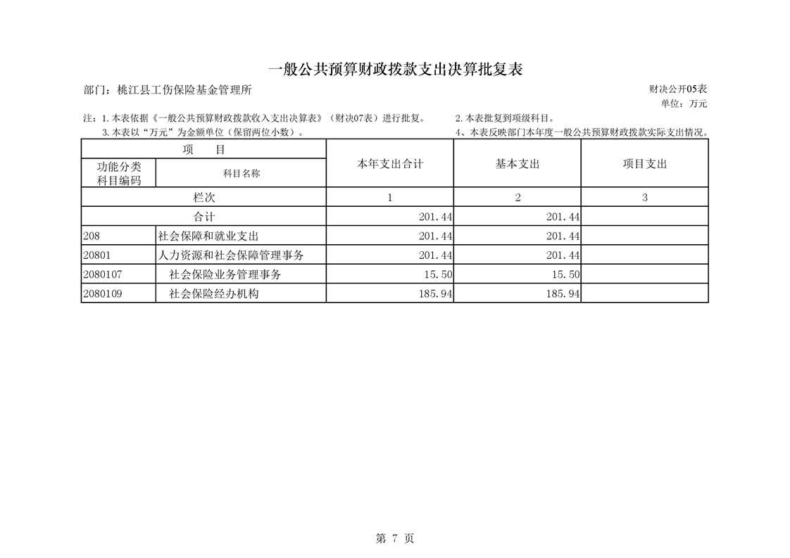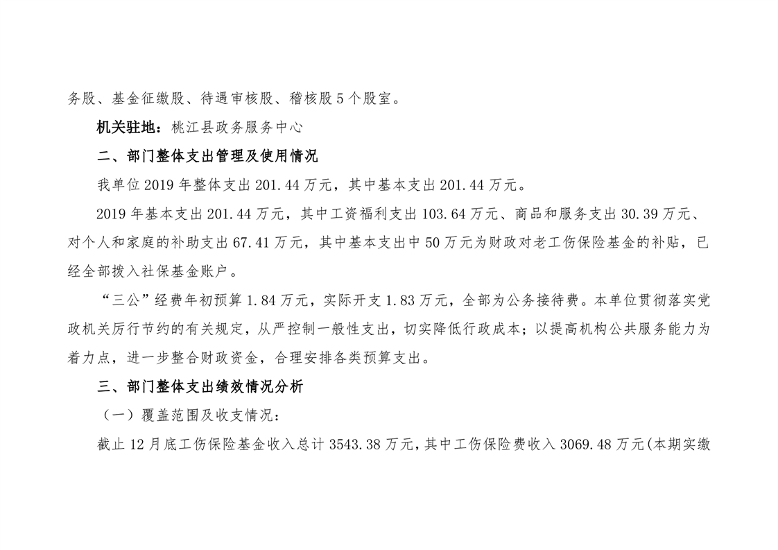 桃江县工伤保险基金管理所2019年度部门决算公开
