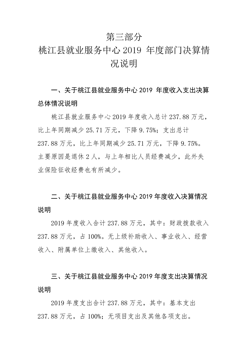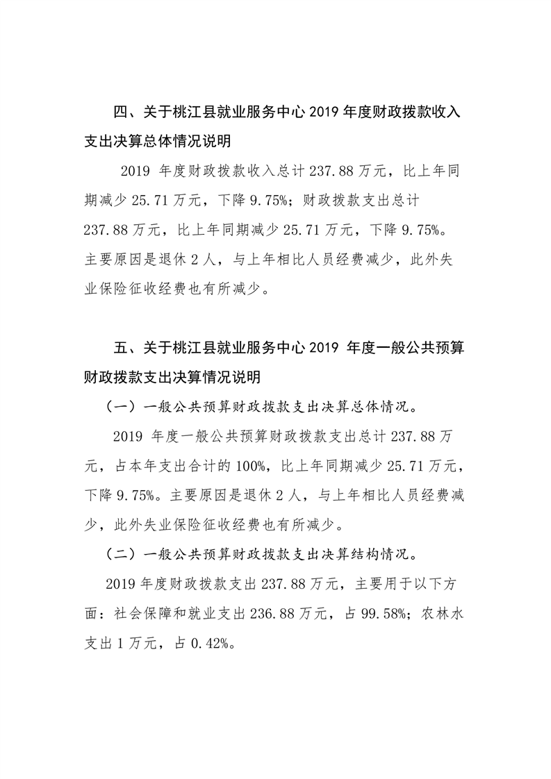 桃江县就业服务中心2019年度部门决算公开