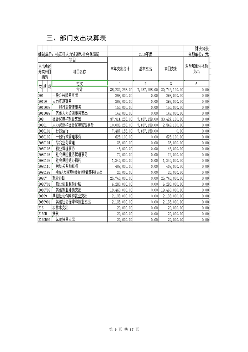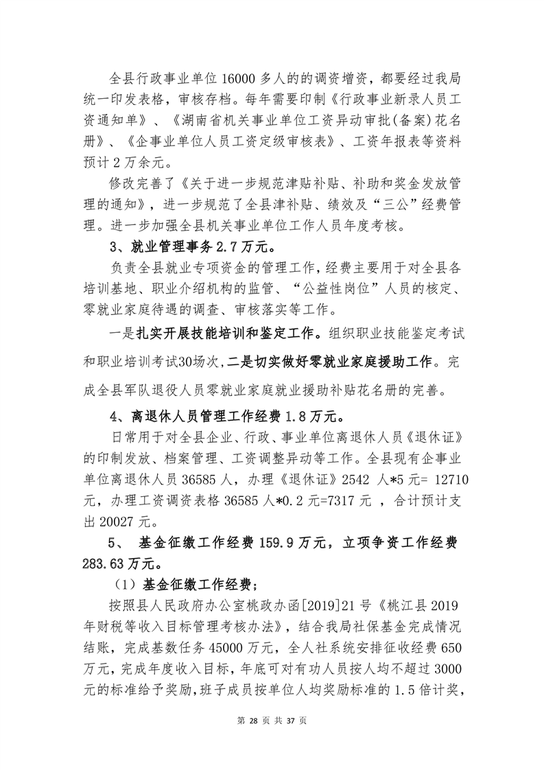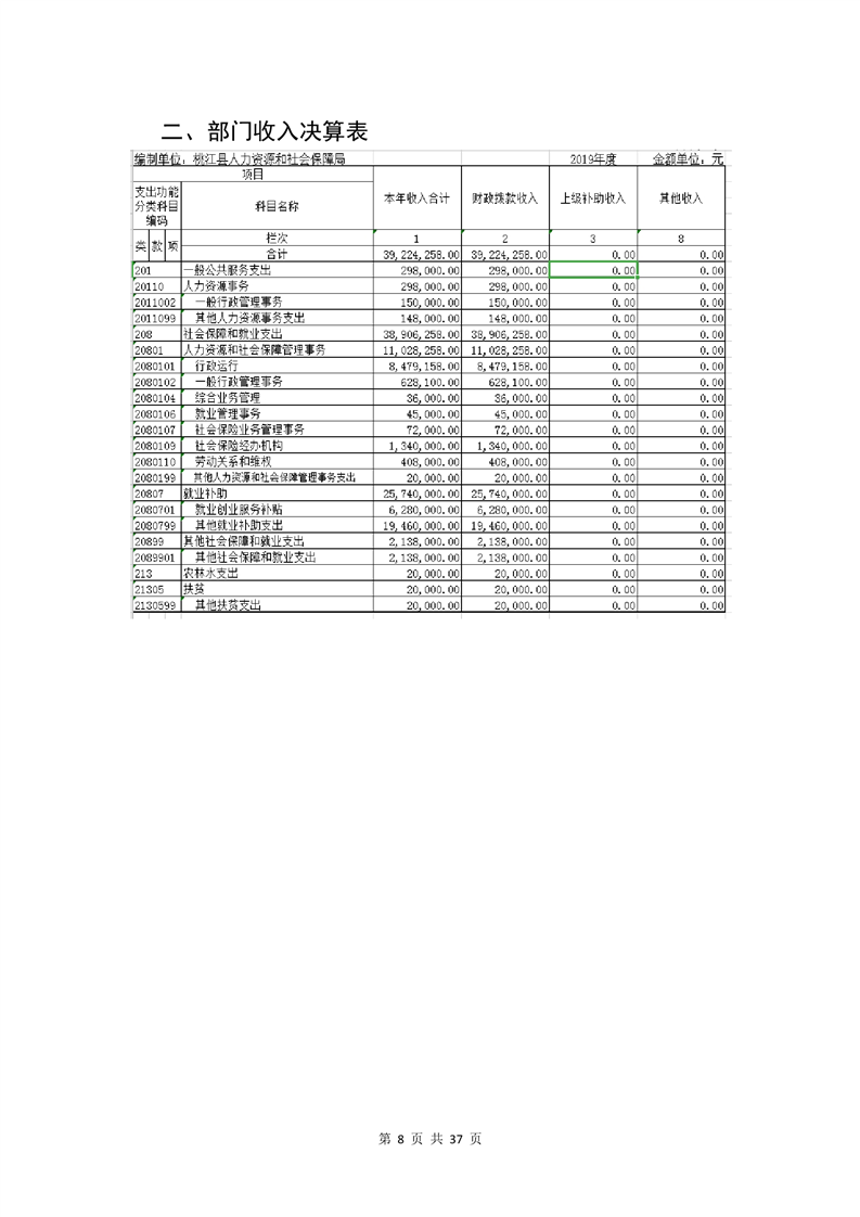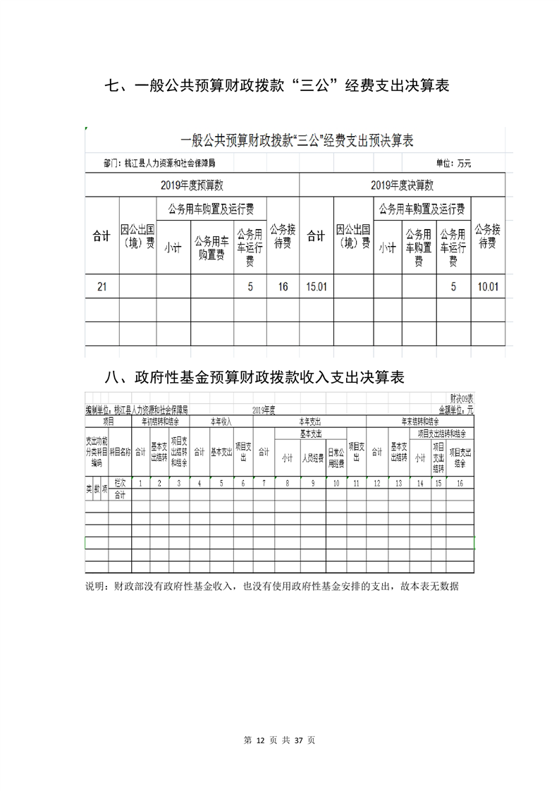 桃江县人力资源和社会保障局2019年度部门决算公开