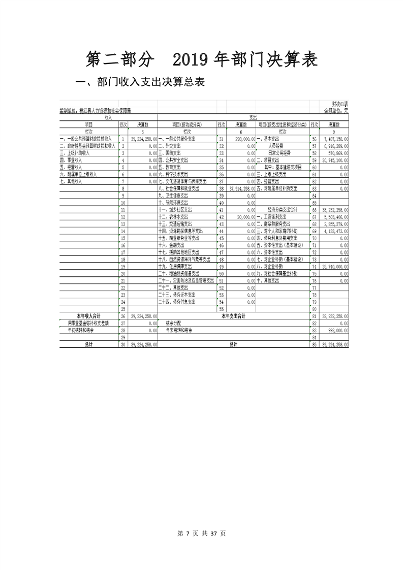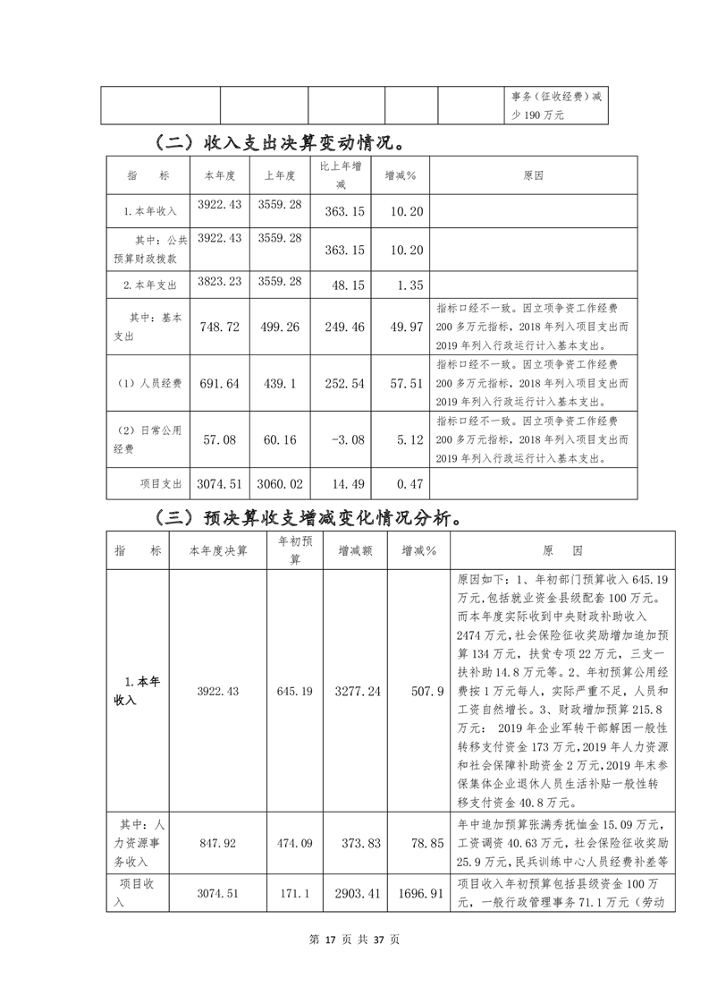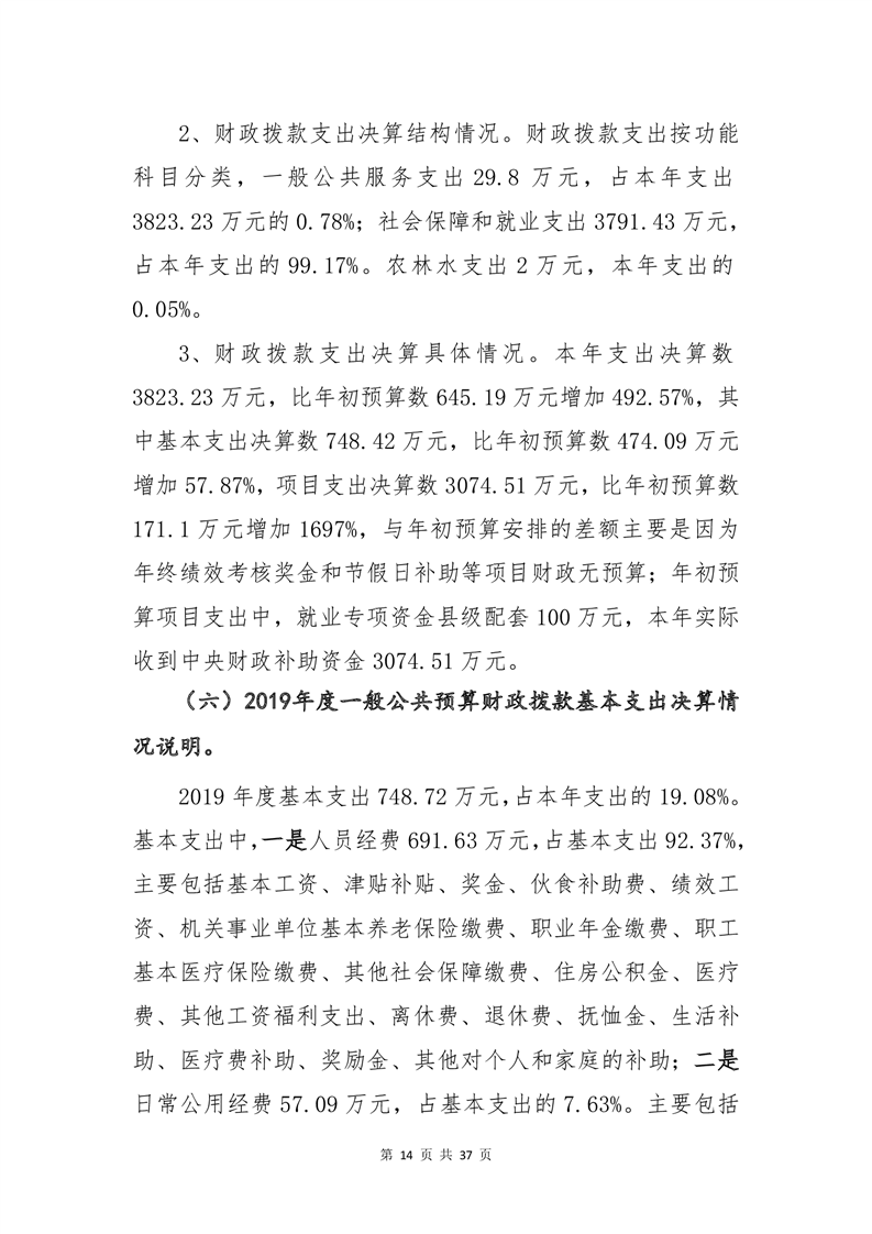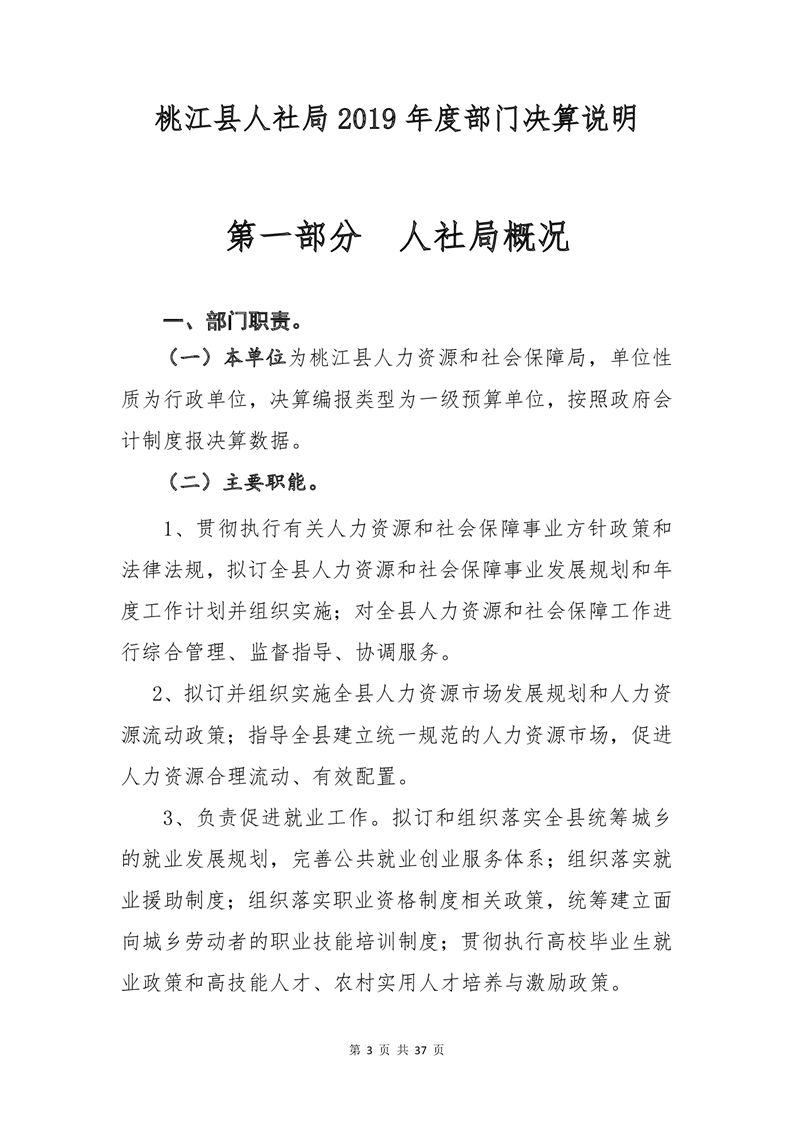 桃江县人力资源和社会保障局2019年度部门决算公开
