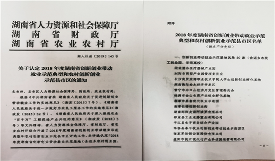 创新创业:我县获评“湖南省农村创新创业示范县”,桃江风河智慧竹业有限公司获评“省创新创业优质初创企业”、桃江现代竹产业科技园运营有限公司获评“创新创业带动就业示范基地”。