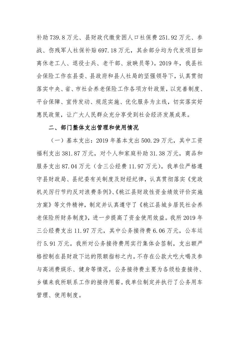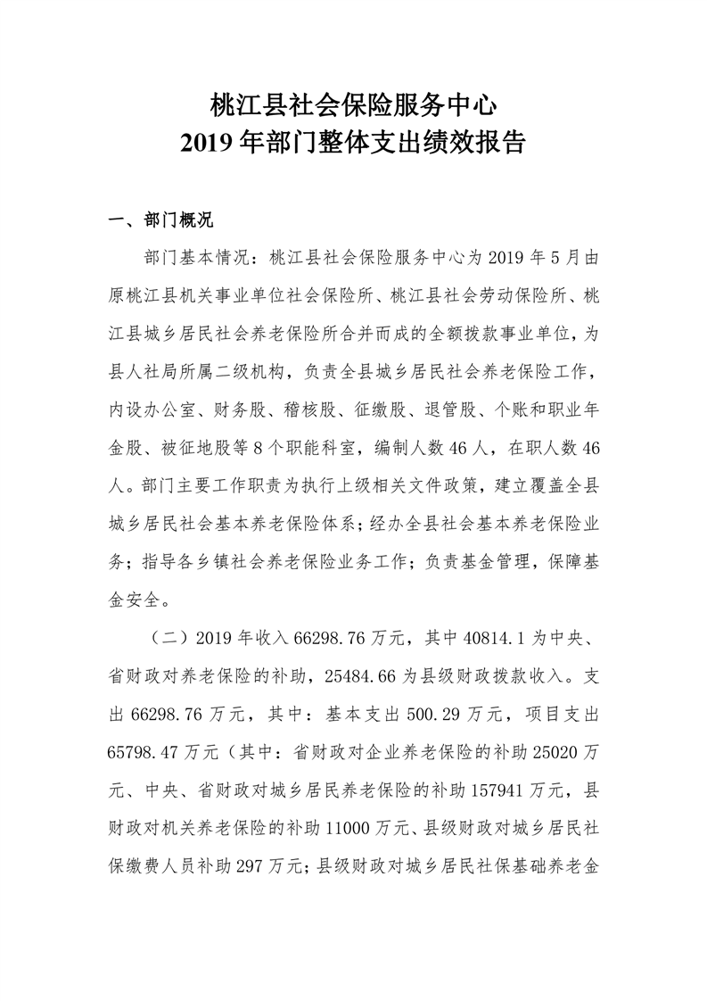 桃江县社会保险服中心2019年部门整体支出绩效报告