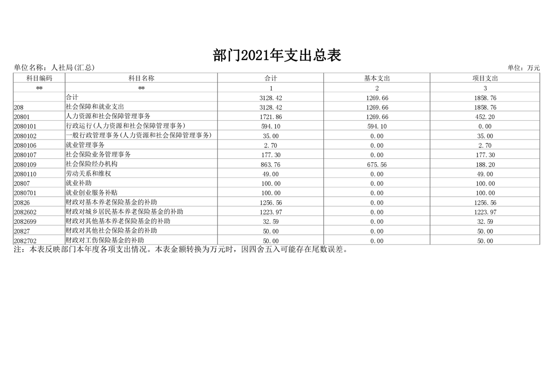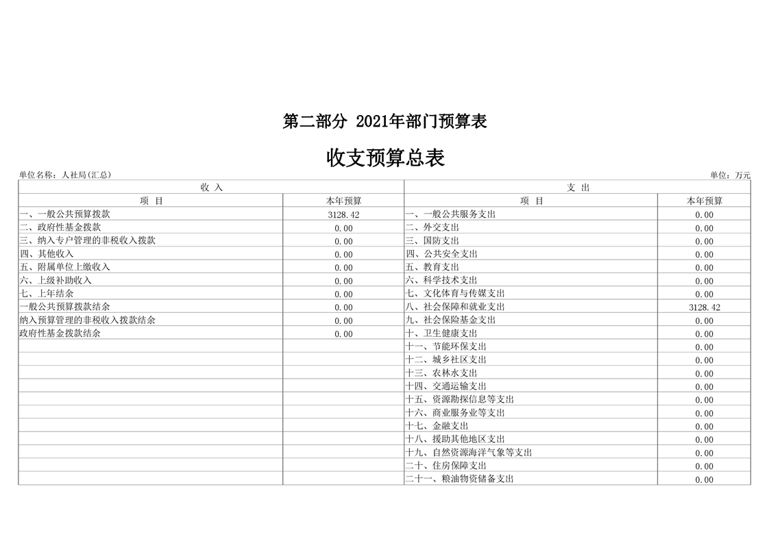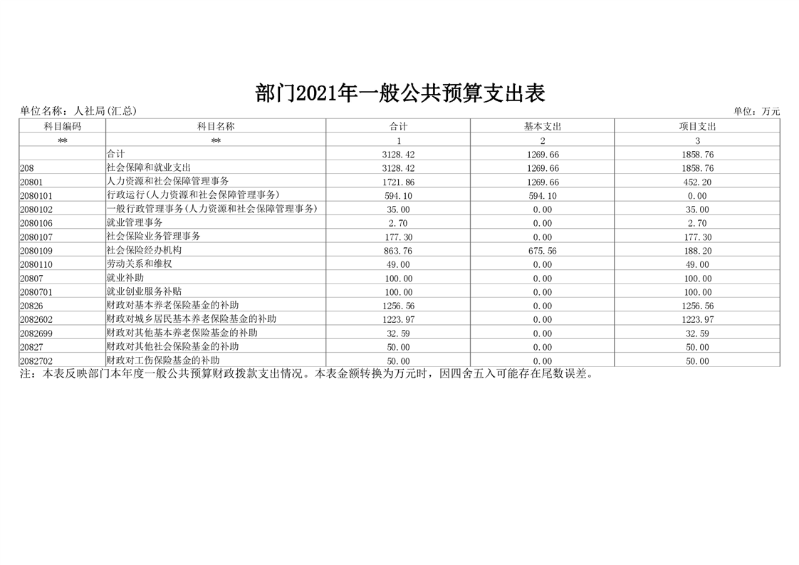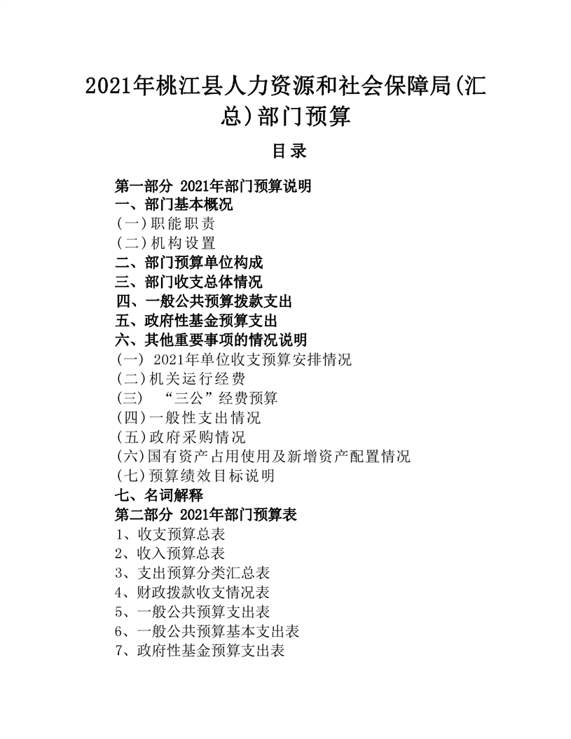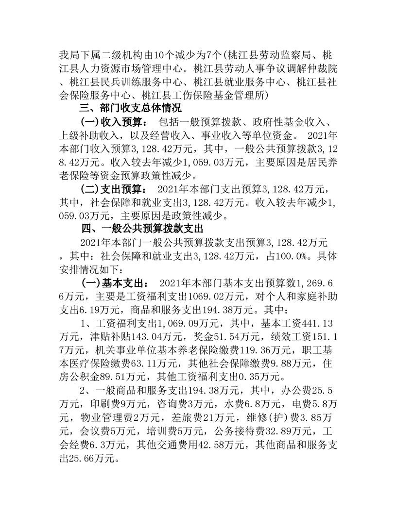2021年桃江县人力资源和社会保障局(汇总)部门预算