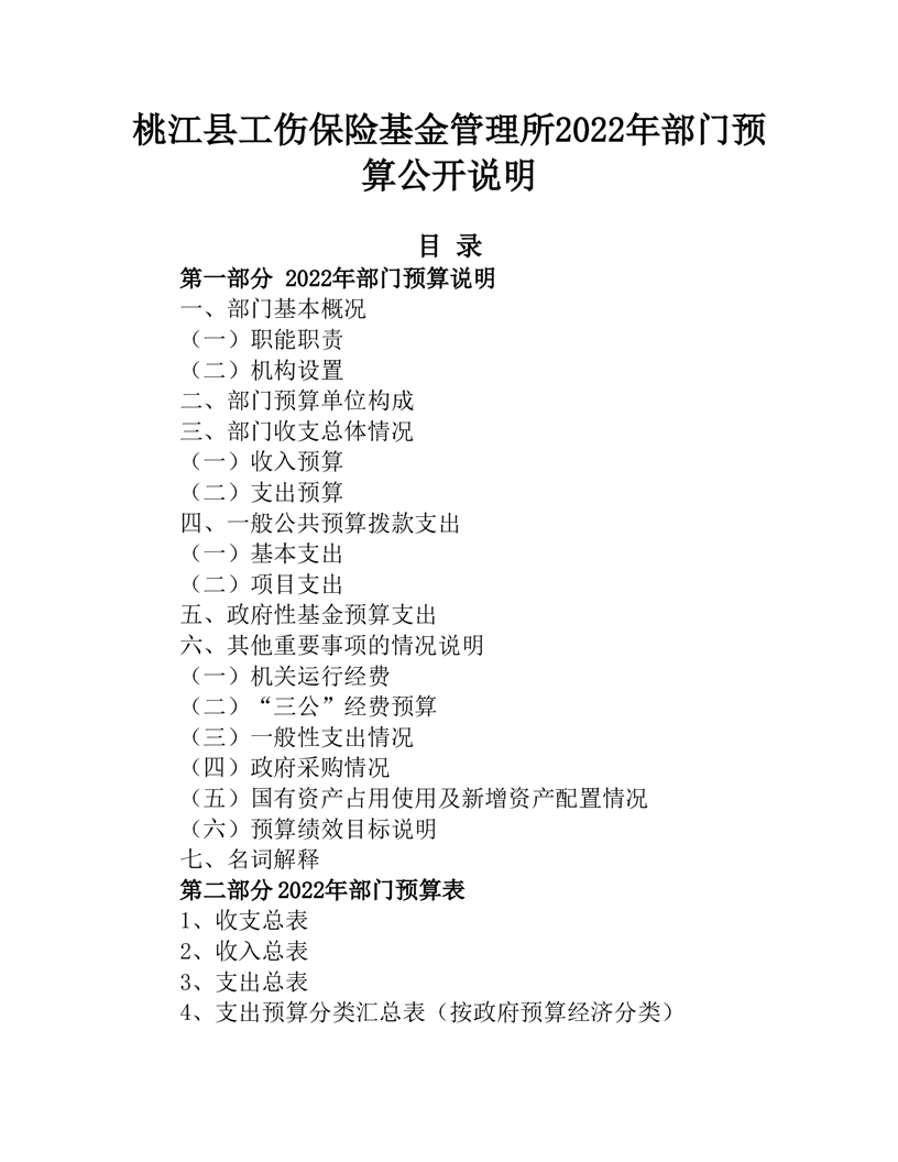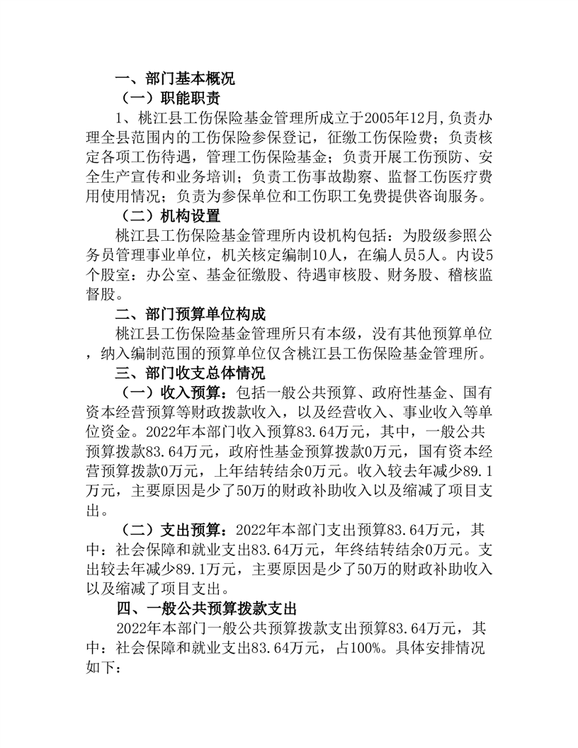 2022年桃江县工伤保险基金管理所部门预算公开说明