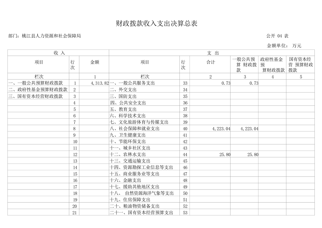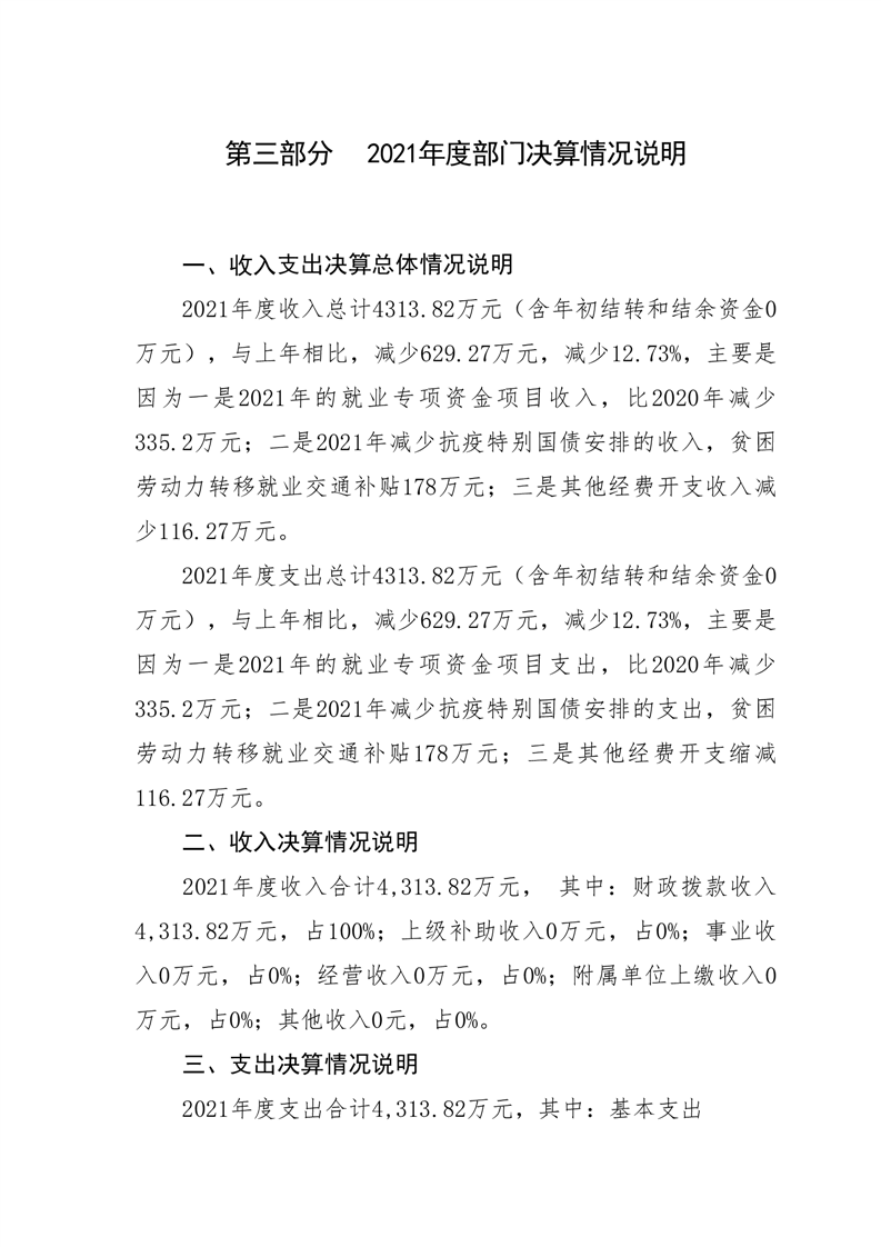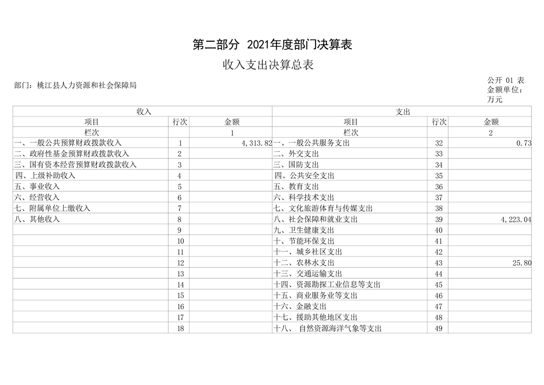 2021年度桃江县人力资源和社会保障局部门决算公开