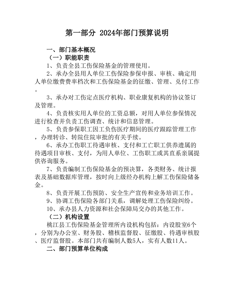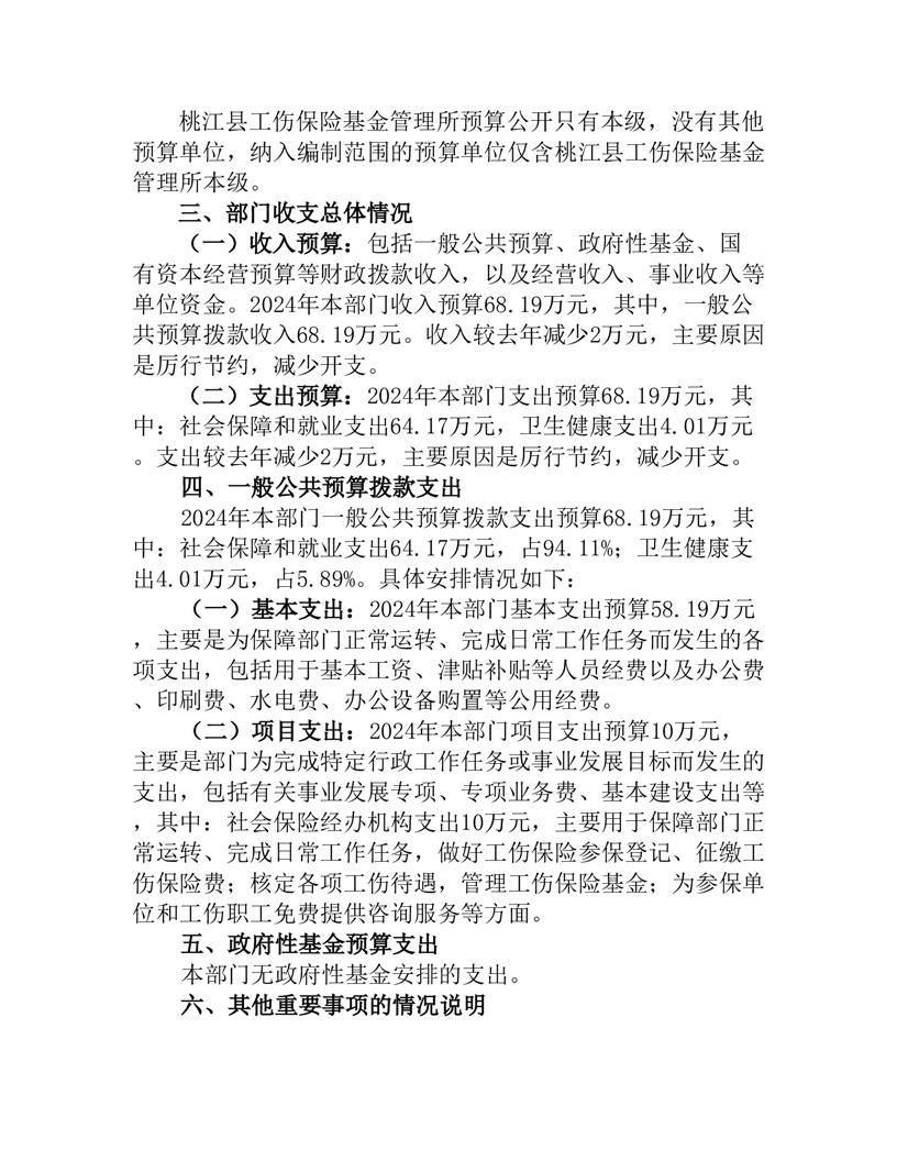 2024年度桃江县工伤保险基金管理所部门预算公开说明