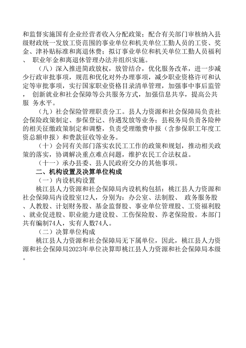 2023年度桃江县人力资源和社会保障局部门决算