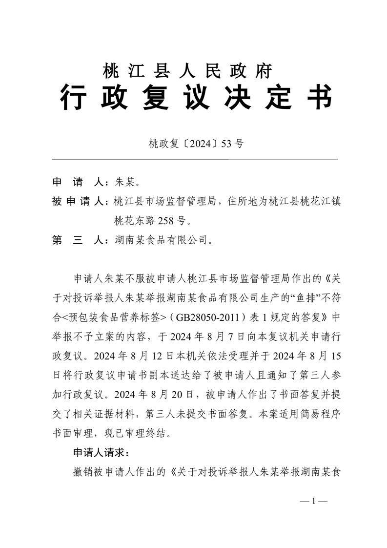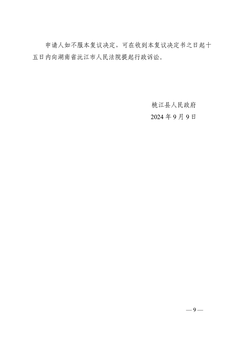 行 政 复 议 决 定 书桃政复〔2024〕53号