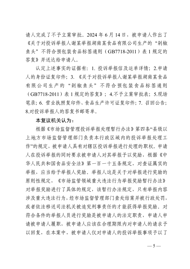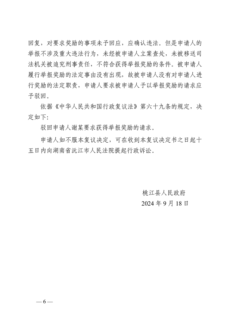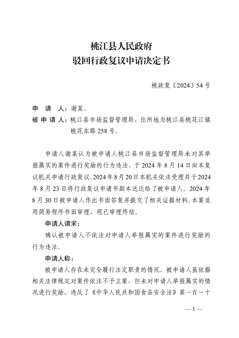 驳回行政复议申请决定书桃政复〔2024〕54号